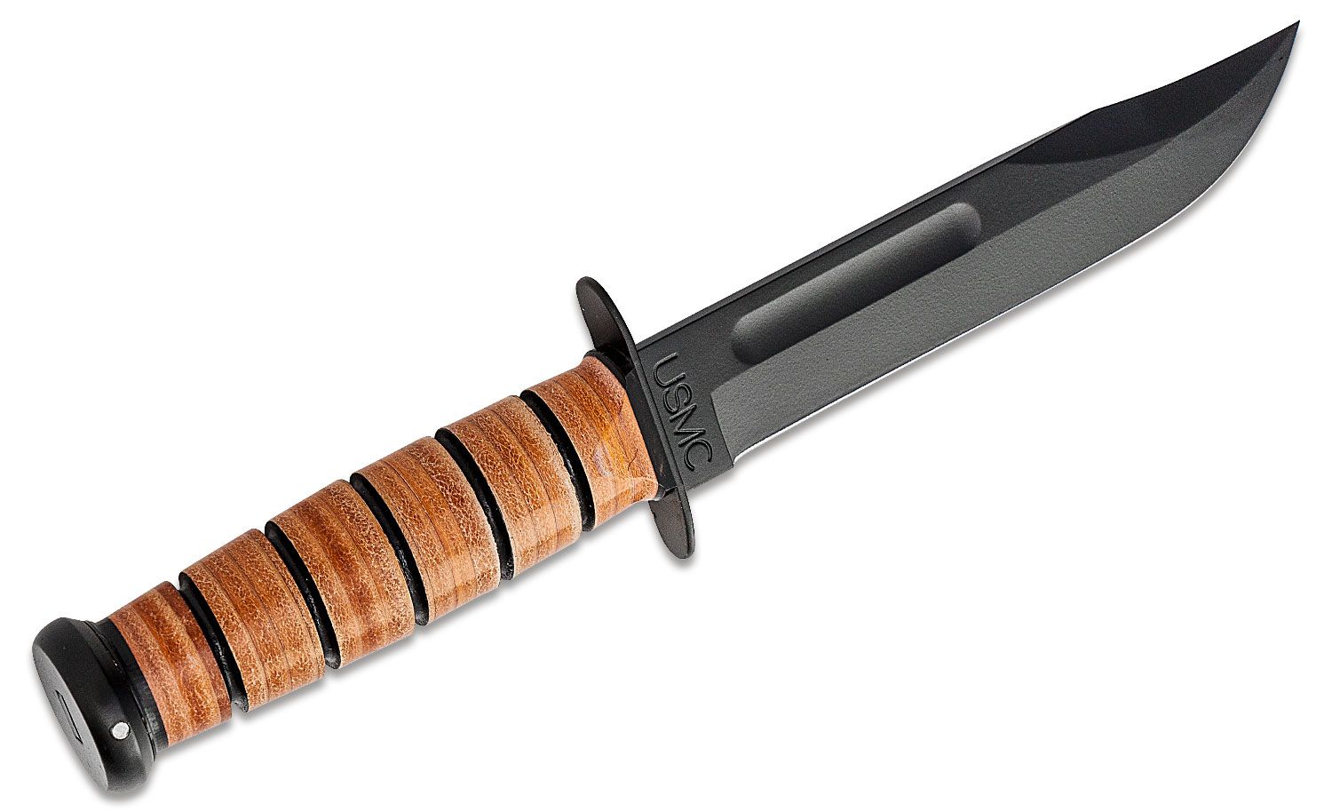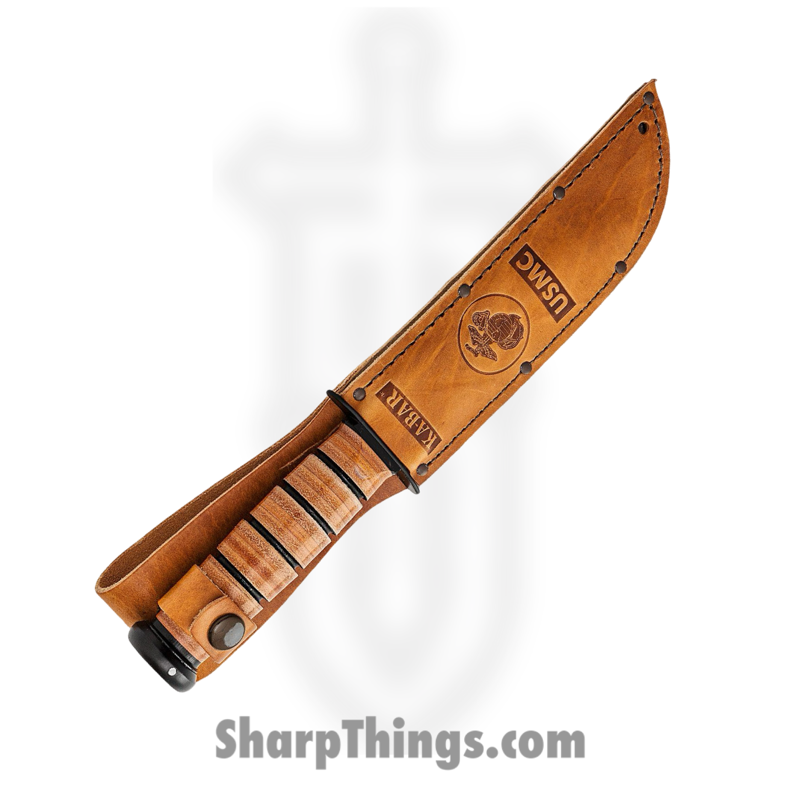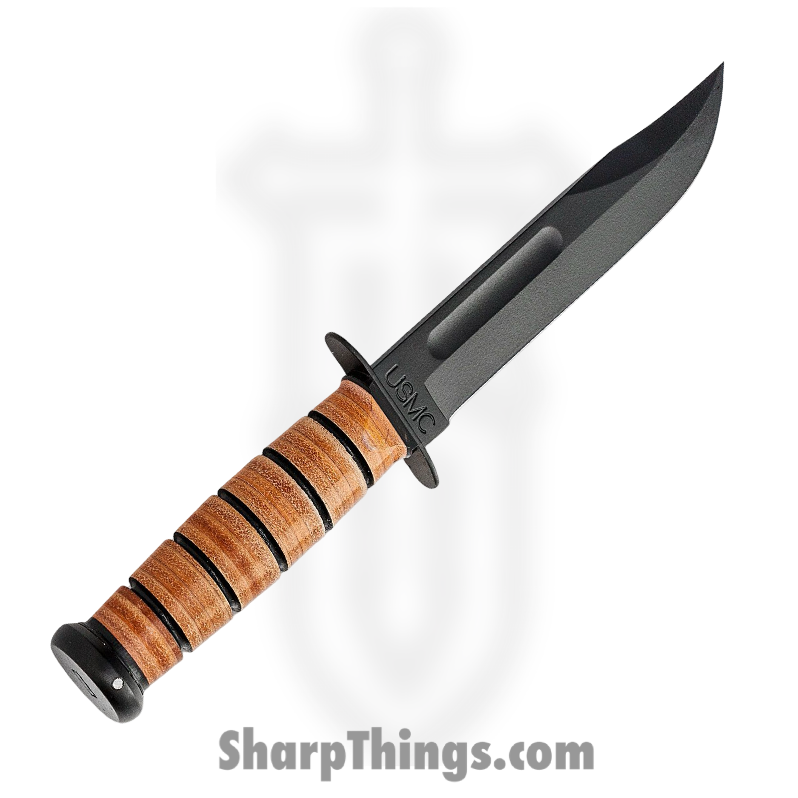 Ka-Bar – KA1217 – USMC Fighter Plain – Fixed Blade Knife – 1095 HC Coated Clip Point – Leather – Brown