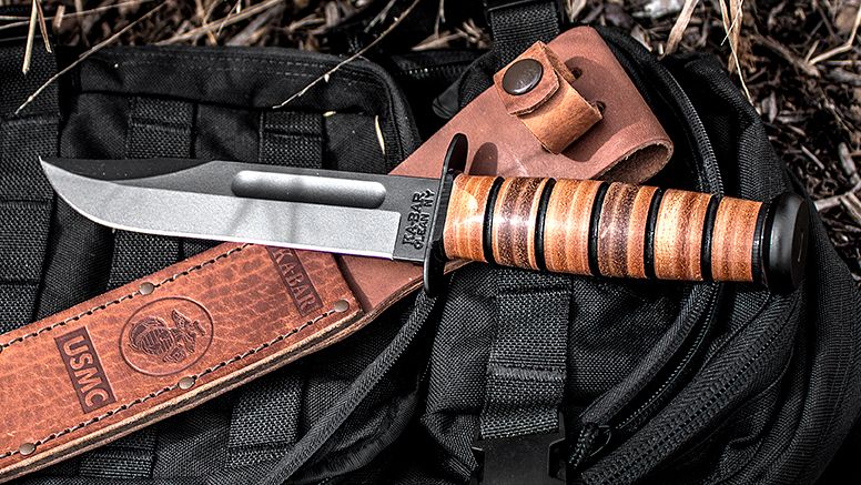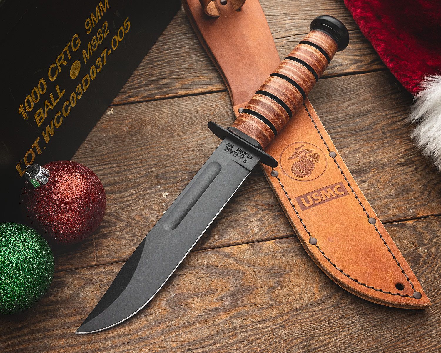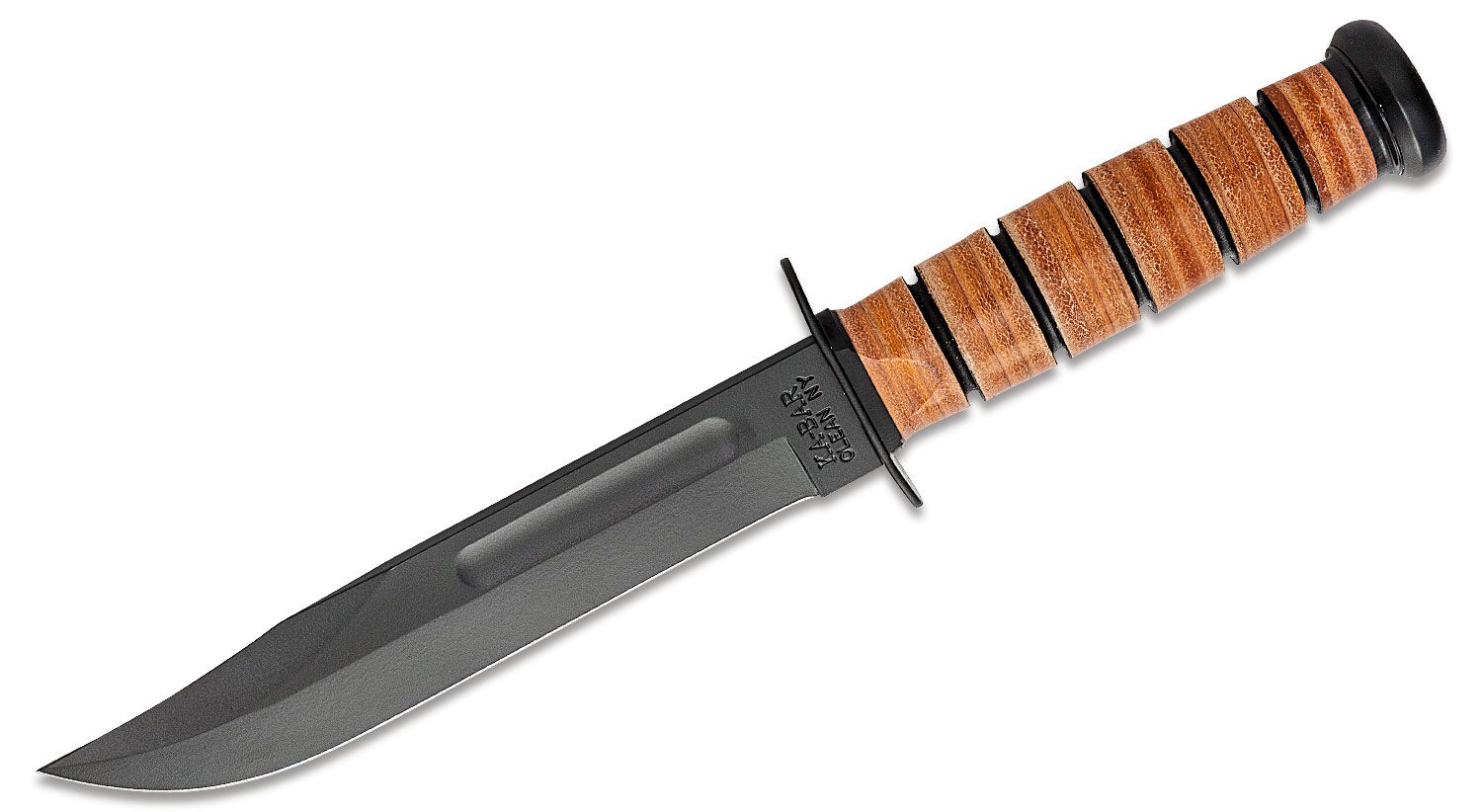 Ka-Bar – KA1217 – USMC Fighter Plain – Fixed Blade Knife – 1095 HC Coated Clip Point – Leather – Brown