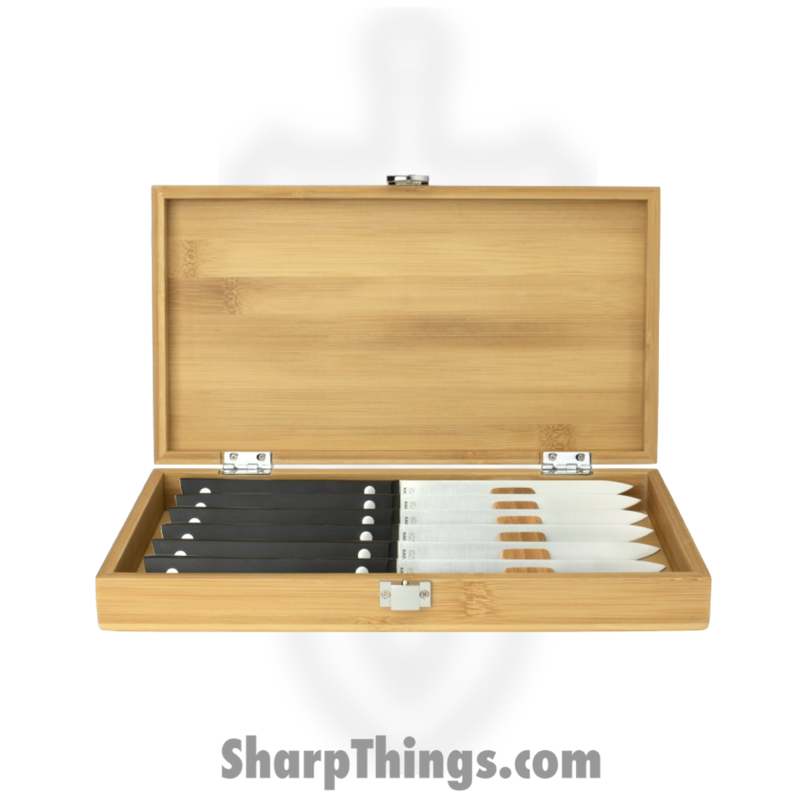 Crafted for steak enthusiasts who appreciate precision, elegance, and durability, the Kai PRO 6-Piece Steak Knife Set (Model KAS0600) delivers a premium slicing experience. Engineered with high-carbon Japanese 420J2 stainless steel blades, each knife boasts a razor-sharp 16° double-bevel edge that glides effortlessly through meat, preserving valuable juices and enhancing flavor. This upscale set includes six expertly balanced knives, each with a 5.25-inch blade—well-suited for cuts of all sizes—and a slim, nearly 4.75-inch POM handle that ensures comfort in hands both large and small. Each knife is fully forged from a single piece of steel (full-tang construction) and securely fastened with rivets, ensuring structural strength and reliable control. The blades’ attractive grazed finish adds a refined aesthetic, while hand sharpening to a 16° angle on each side provides unmatched cutting performance. Tailored for both casual dinners and professional kitchens alike, this set is NSF-certified for commercial use and is backed by a limited lifetime warranty—supporting long-term enjoyment and dependable upkeep.