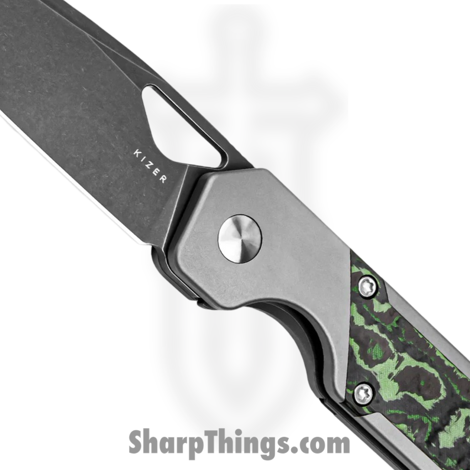 Kizer Cutlery – KI3634SA2 – Mini Militaw – Folding Knife – S45VN Coated Drop Point – Titanium Fat Carbon – Silver Green