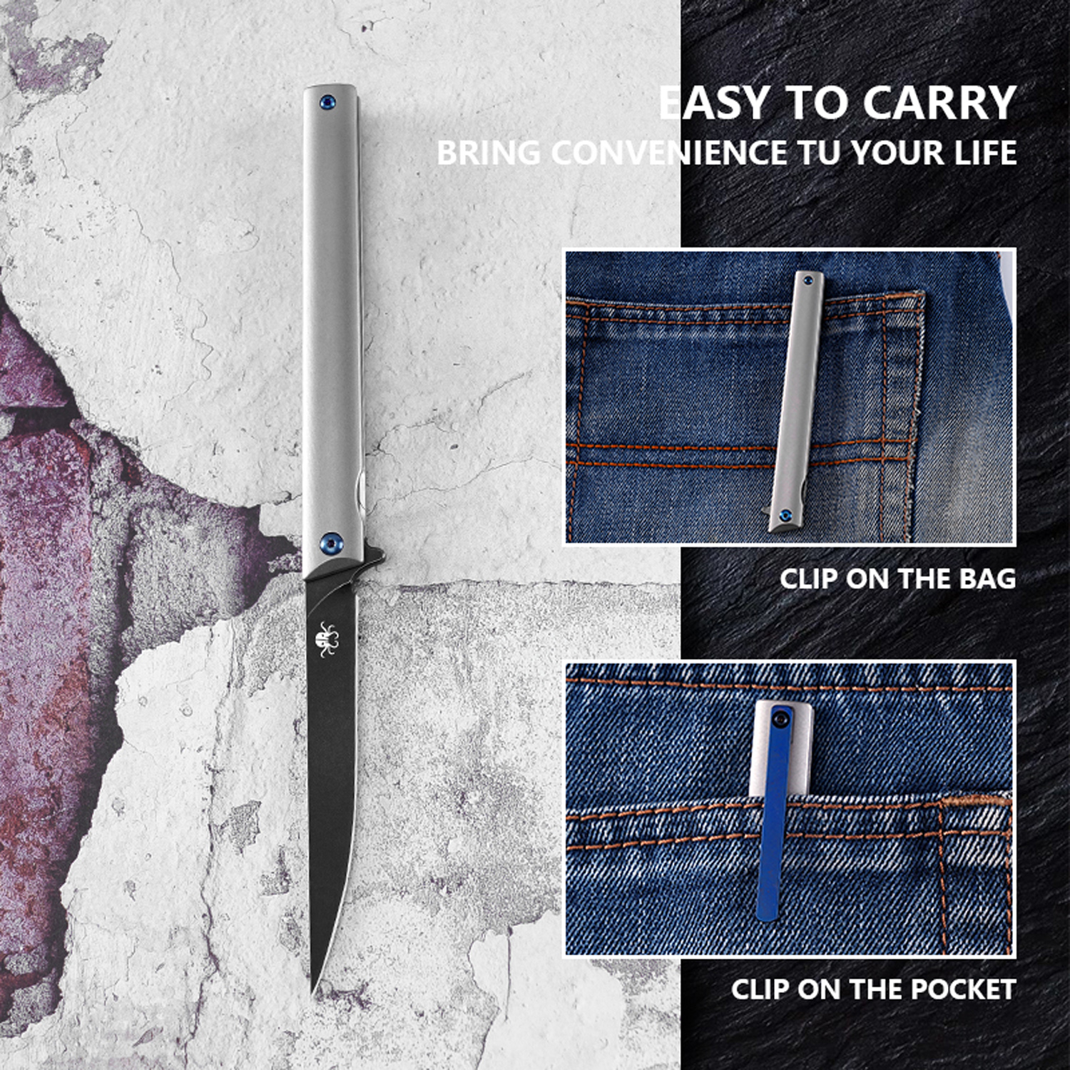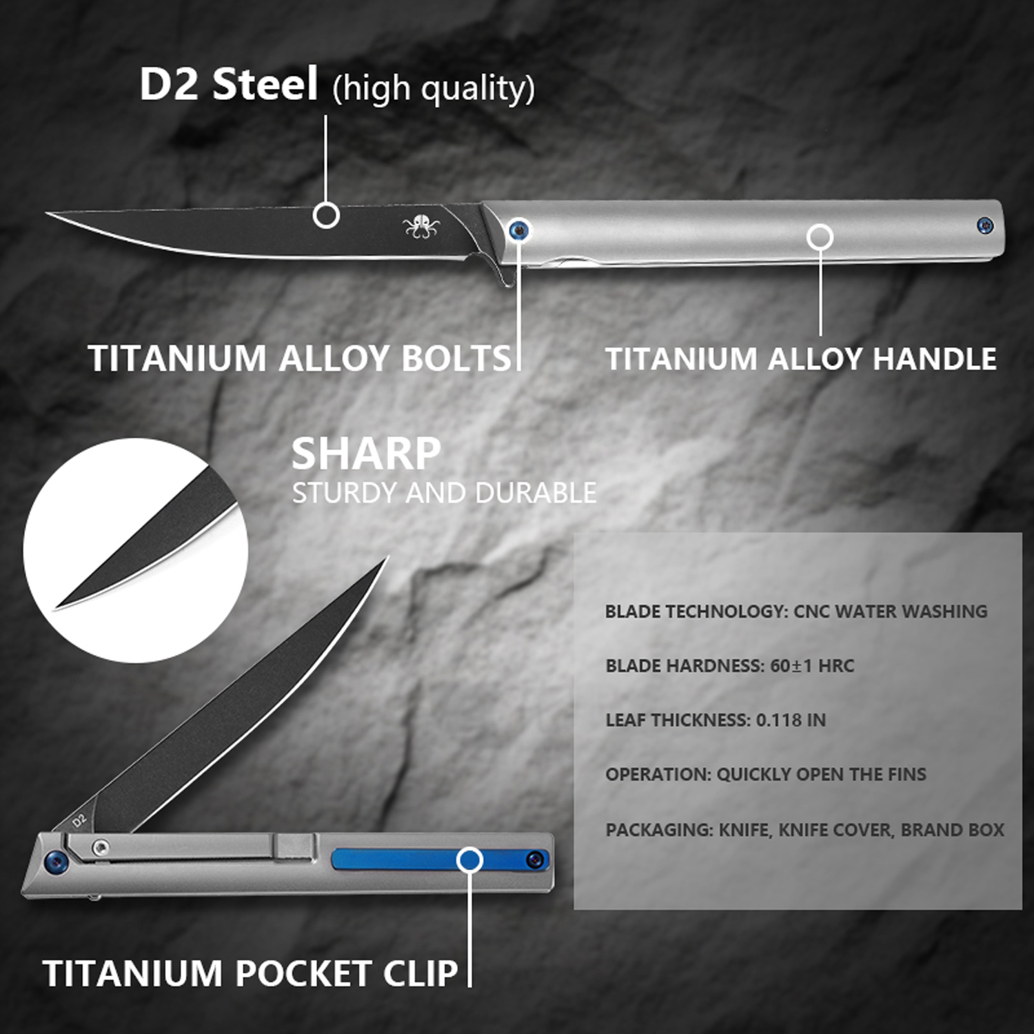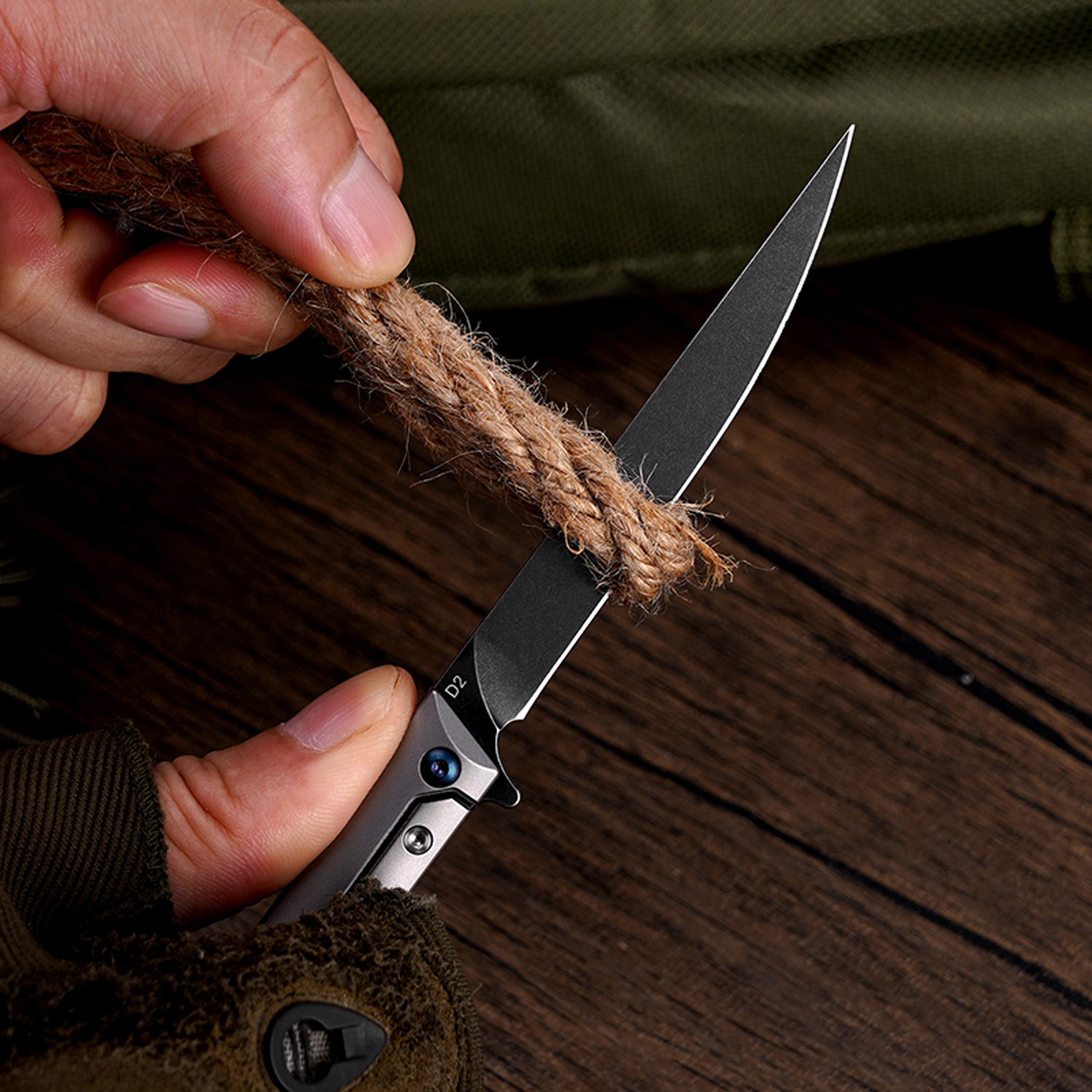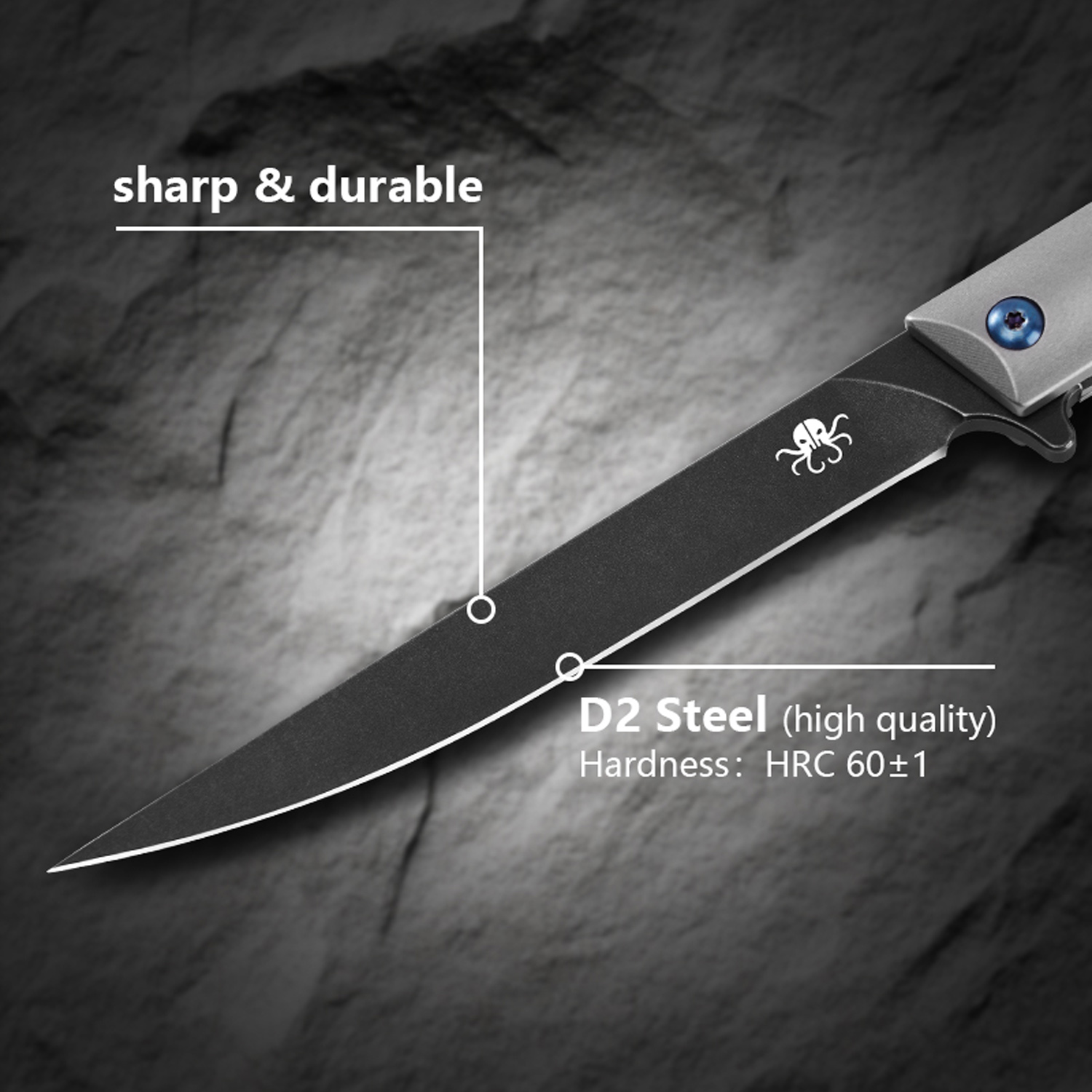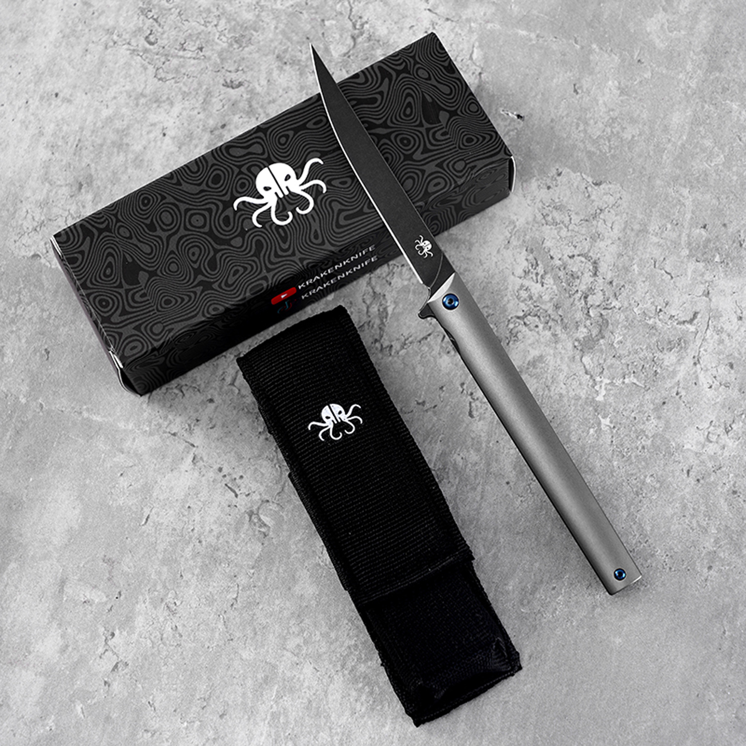 The Klaken Regent B13-TIDP-BK offers a refined balance of durability, lightweight titanium construction, and a practical drop point blade designed for everyday cutting tasks. Its 3.54-inch D2 drop point blade features a tough black coated finish that enhances corrosion resistance while giving the knife a sleek, uniform appearance. The drop point geometry provides excellent slicing power paired with a strong, controllable tip, making it a versatile tool for daily utility tasks, on-the-job cutting, or outdoor use. D2 steel continues to be favored for its high wear resistance and ability to maintain a sharp, working edge under constant use.