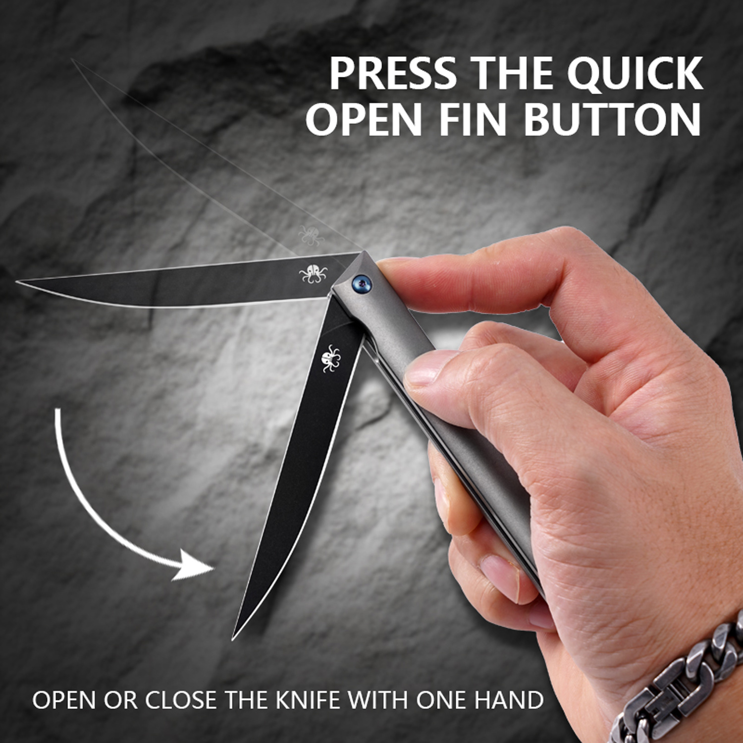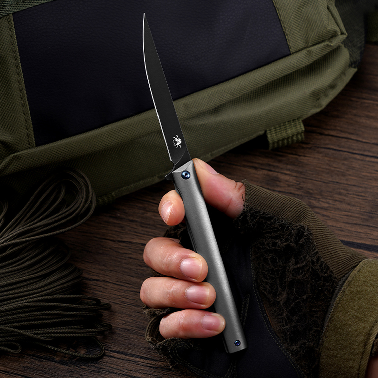 The 4.53-inch black titanium handle gives the Regent a modern, tactical look while keeping weight low and structural durability high. Titanium’s strength and resistance to impact make it an excellent choice for a premium working knife. The ergonomic contouring ensures a comfortable grip with reliable traction across various conditions. Combined with the secure liner lock mechanism, the knife maintains confidence-inspiring blade stability during use.