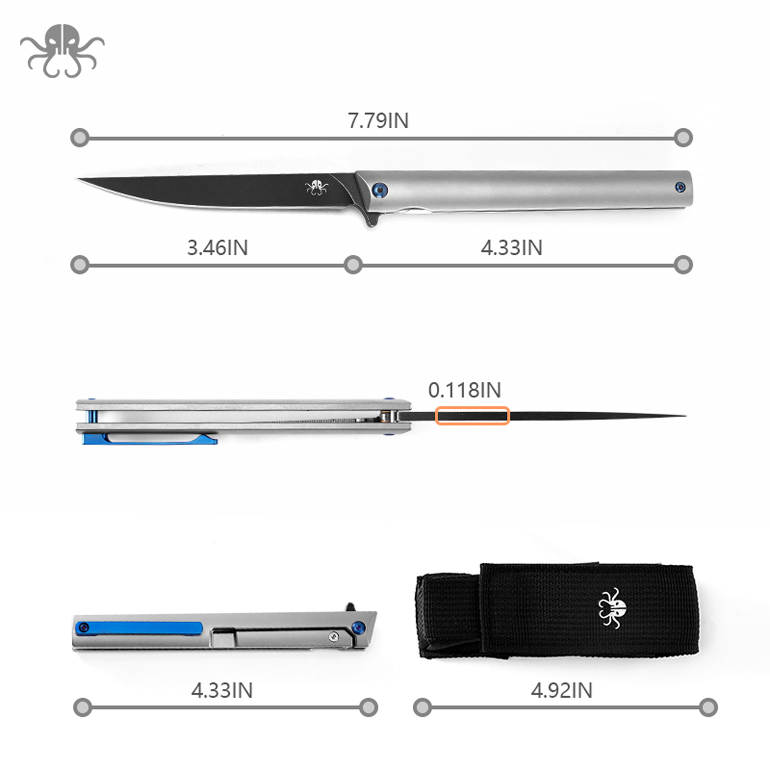 Klaken Knives – B13-TIDP-BK – Regent – Folding Knife – D2 Coated Drop Point – Titanium – Black
