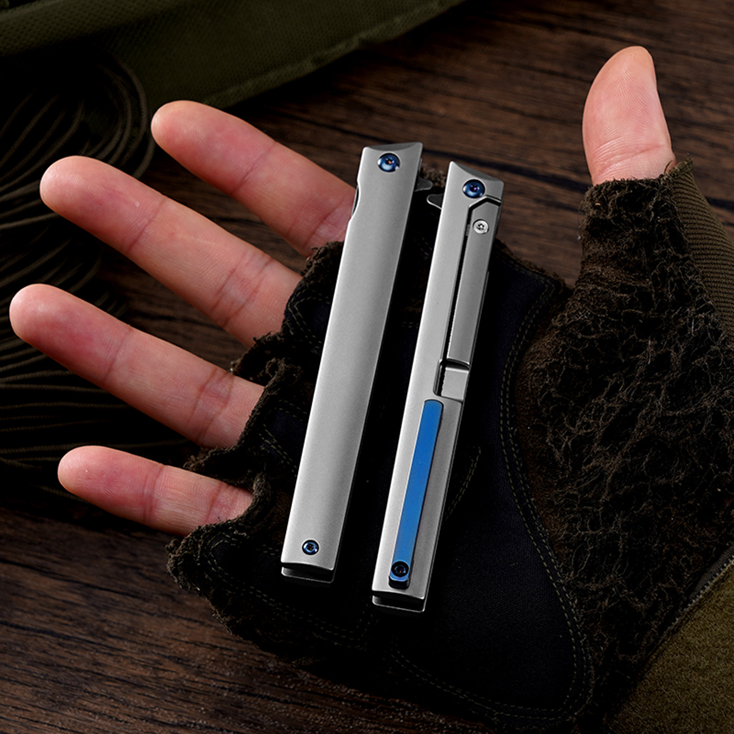 Klaken Knives – B13-TIDP-BK – Regent – Folding Knife – D2 Coated Drop Point – Titanium – Natural