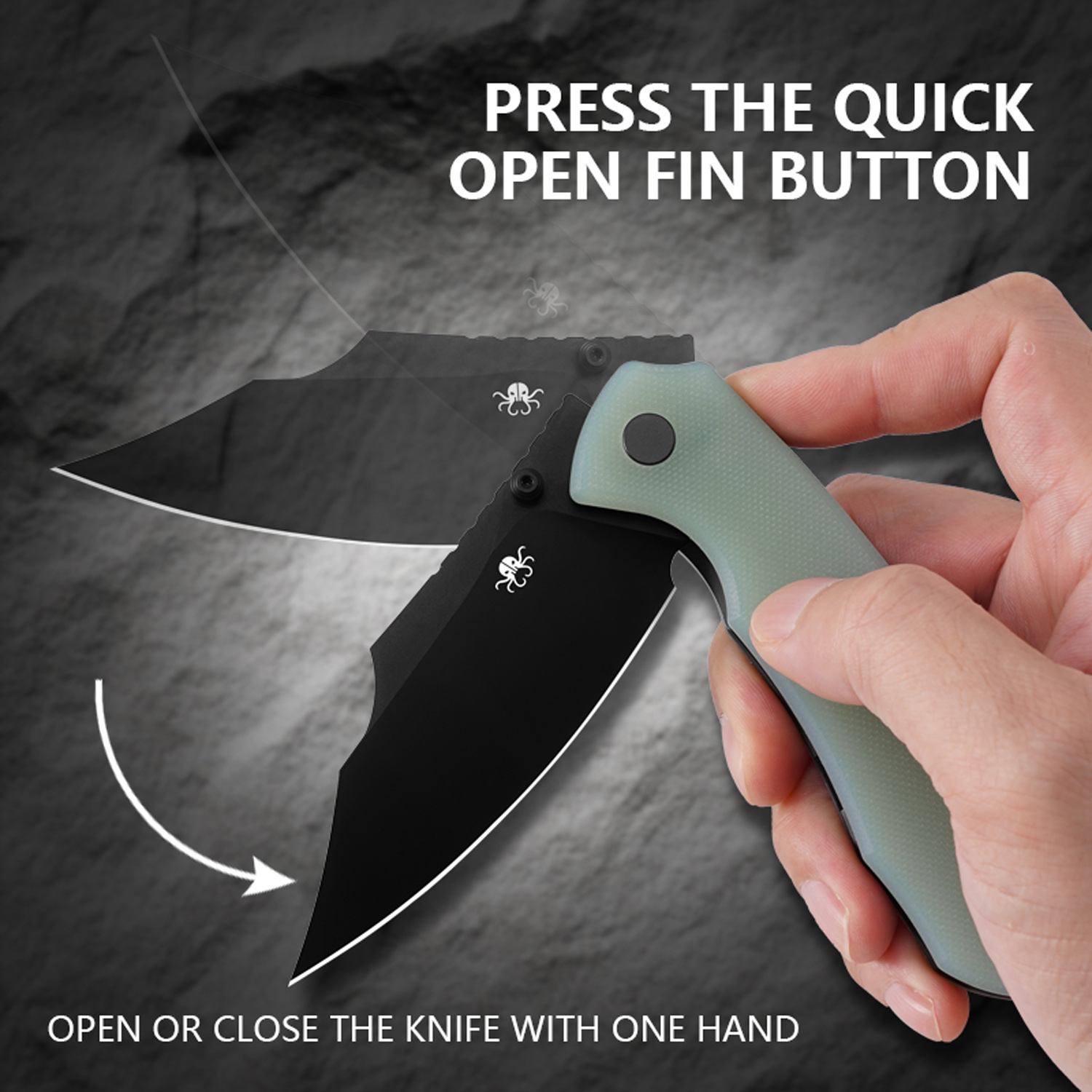 The 4.57-inch jade G10 handle provides a visually striking look combined with durable, high-traction performance. G10 remains one of the best materials for EDC knives due to its strength, light weight, and resistance to moisture and impact. The ergonomic shaping supports a natural, secure grip, making the Specter comfortable and predictable in hand even through extended use. A liner lock offers secure blade engagement, ensuring confidence during detailed or forceful cutting tasks.