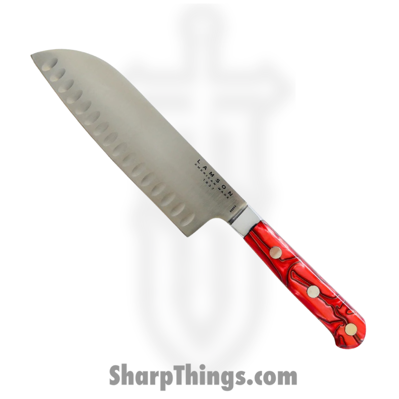 Lamson – 59953 – 7in Premier Forged Santoku Kullenschliff Edge Knife – 4116 Polished – Acrylic – Fire