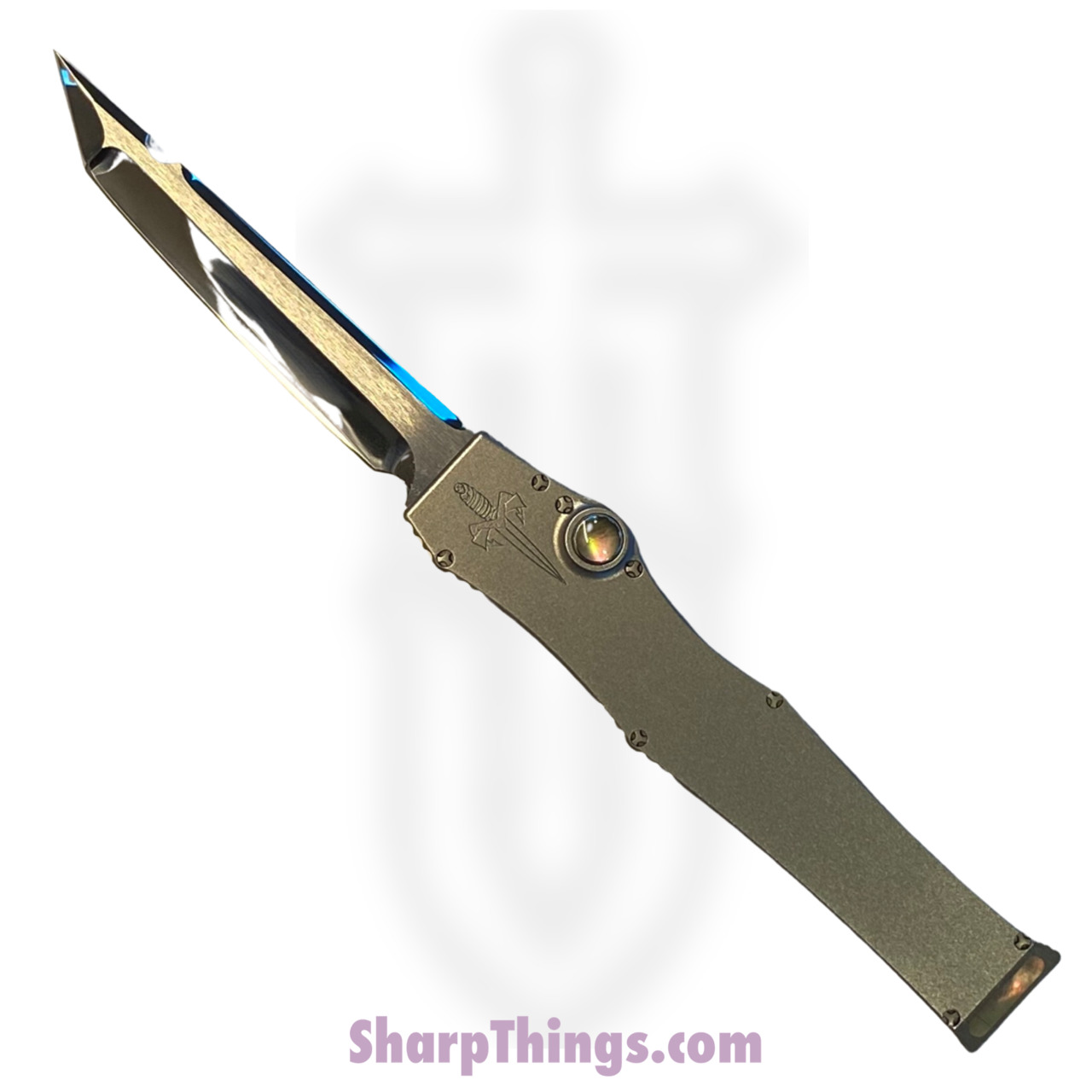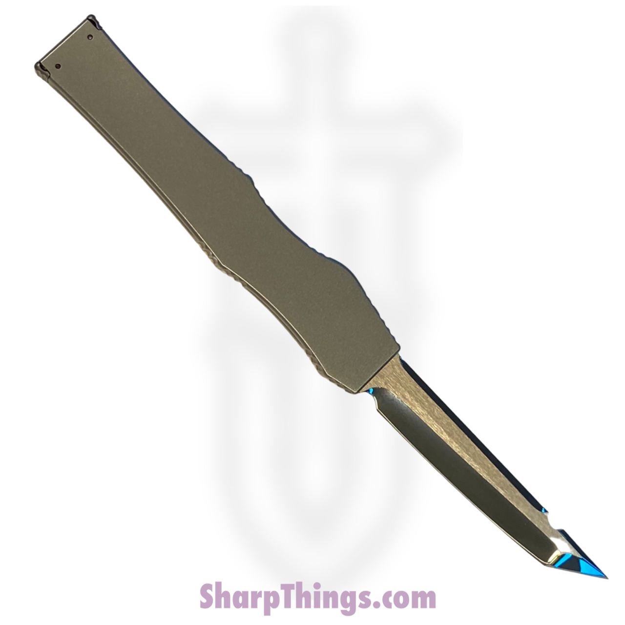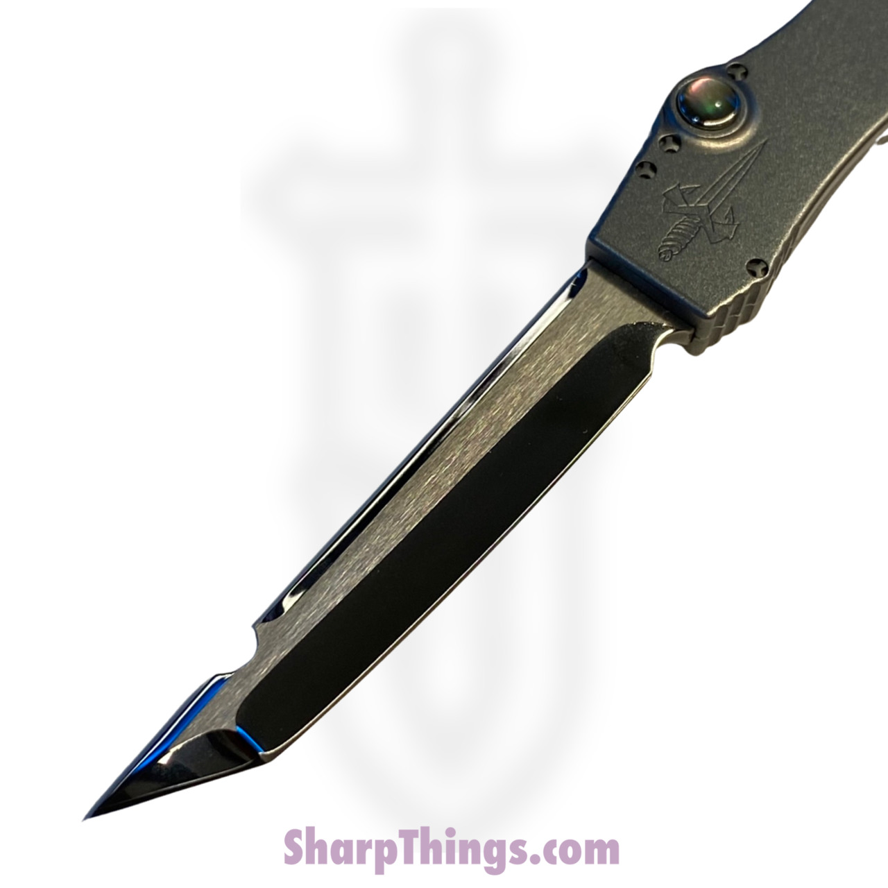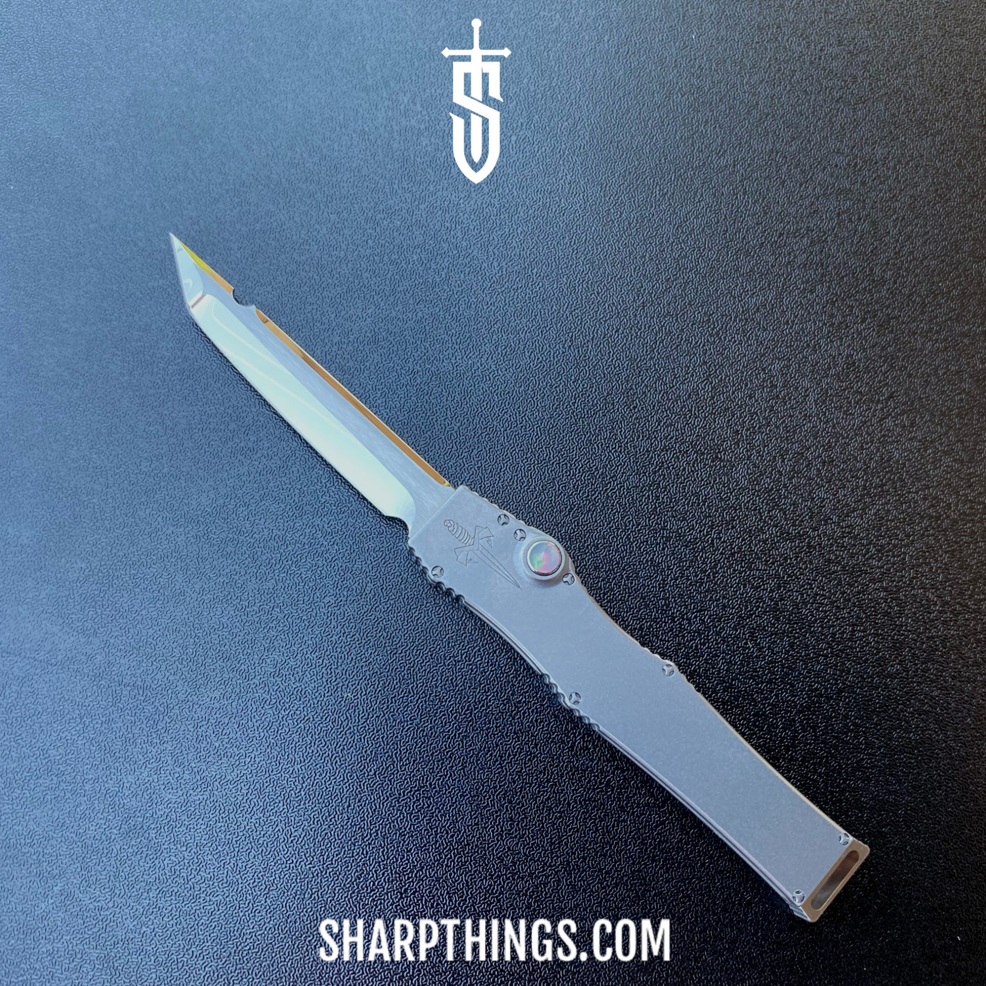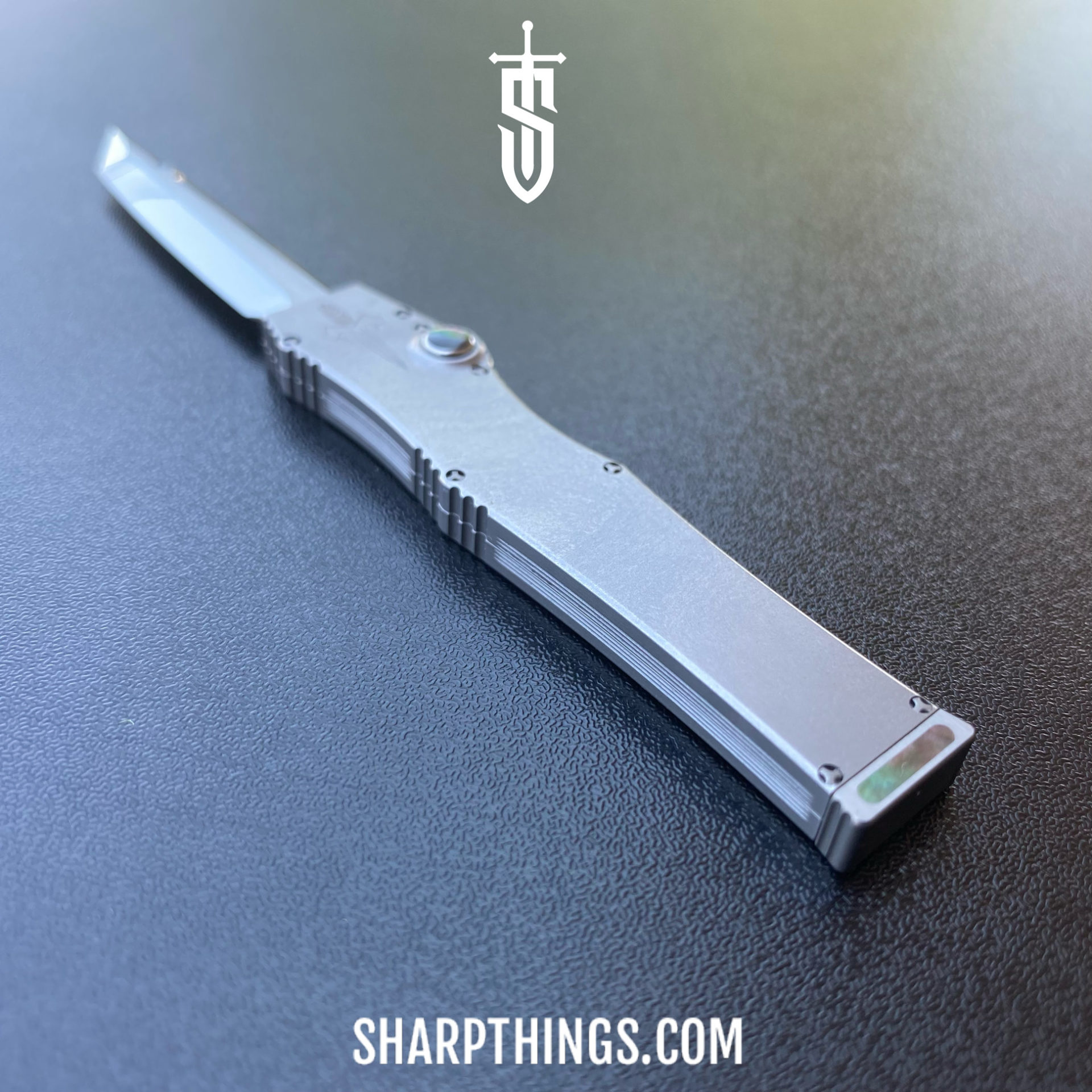 The Halo Automatic from Tony Marfione is the class of the OTF world and has one of the strongest firing blades we’ve ever seen. The push-button fires the blade out lightning-fast and it also unlocks the blade so that when you pull the tab at the butt end of the knife, the blade retracts easily into the handle to fire again.