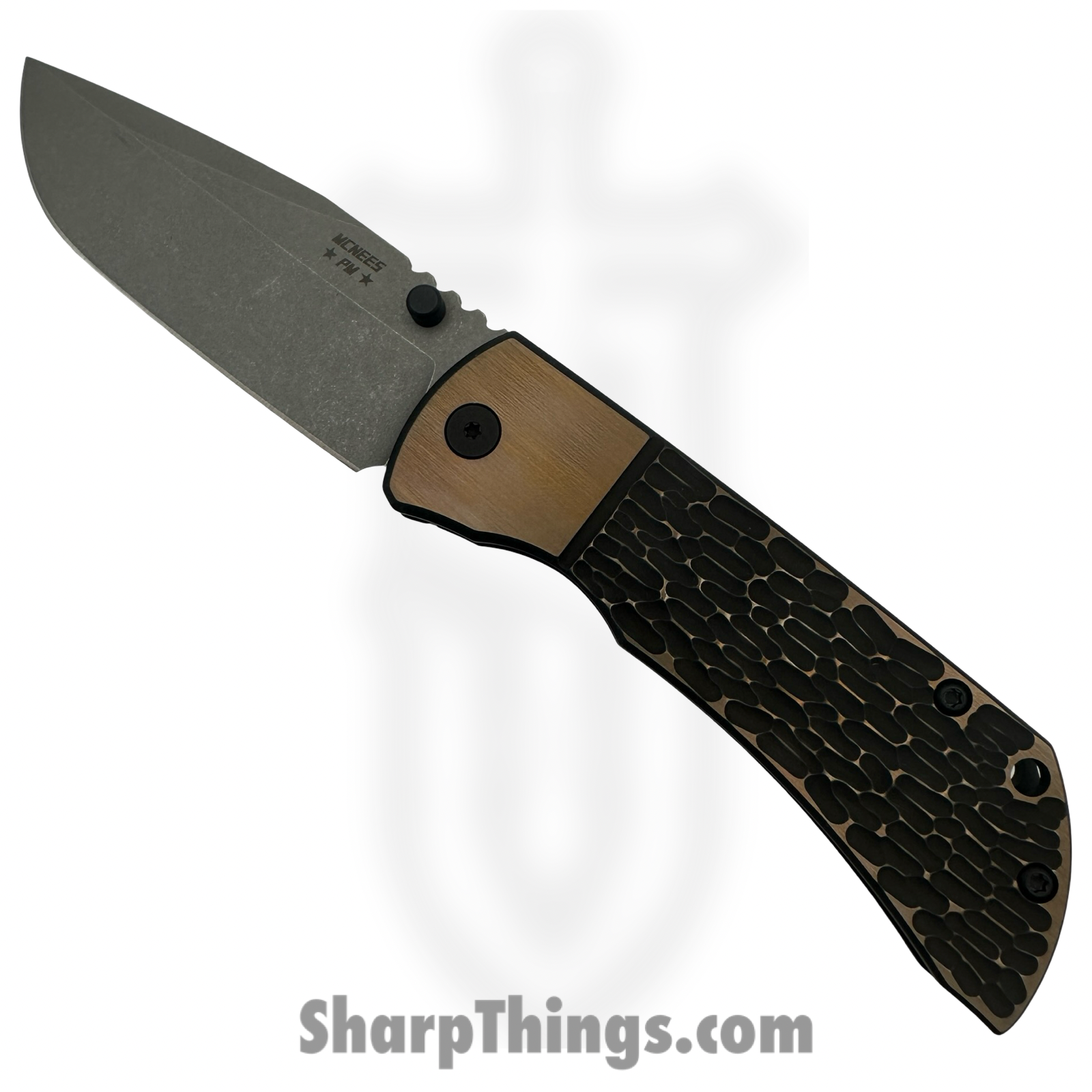 Precision-crafted in the USA, the McNees MAC23.5BJIGBLKBRZ PM Mac 2 3.5″ represents the second generation of the acclaimed Performance Machined (PM) line from Jonathan McNees. Built with meticulous attention to detail and American-made integrity, this folding knife brings high-end features to an everyday carry platform while honoring McNees’ unwavering commitment to domestic manufacturing. This Gen 2 model keeps the sleek, flowing design of the original PM Mac 2 but enhances the platform with subtle yet meaningful upgrades. These include a redesigned threaded standoff system for increased durability and ease of maintenance, a milled pocket clip recess for a more secure fit, and hardware upgrades like U.S.-made body screws and a titanium pocket clip. The knife operates smoothly on Delrin-caged ceramic bearings, offering a fast, reliable, and refined deployment via dual thumb studs. The blade, crafted from ultra-premium CPM MagnaCut stainless steel, measures 3.5″ and is flat-ground for a razor-sharp edge and long-term performance. Its drop point profile is versatile and robust, ideal for a wide range of cutting tasks. The handle boasts a stunning black and bronze anodized titanium construction with a bolstered jigged pattern, offering both visual appeal and a secure, ergonomic grip. Perfectly balanced, pocket-friendly, and precision-machined, the PM Mac 2 3.5″ is a testament to American knife-making craftsmanship and Jonathan McNees’ uncompromising standards. Whether you’re a collector or a serious EDC user, this model delivers top-tier performance with custom-level aesthetics.