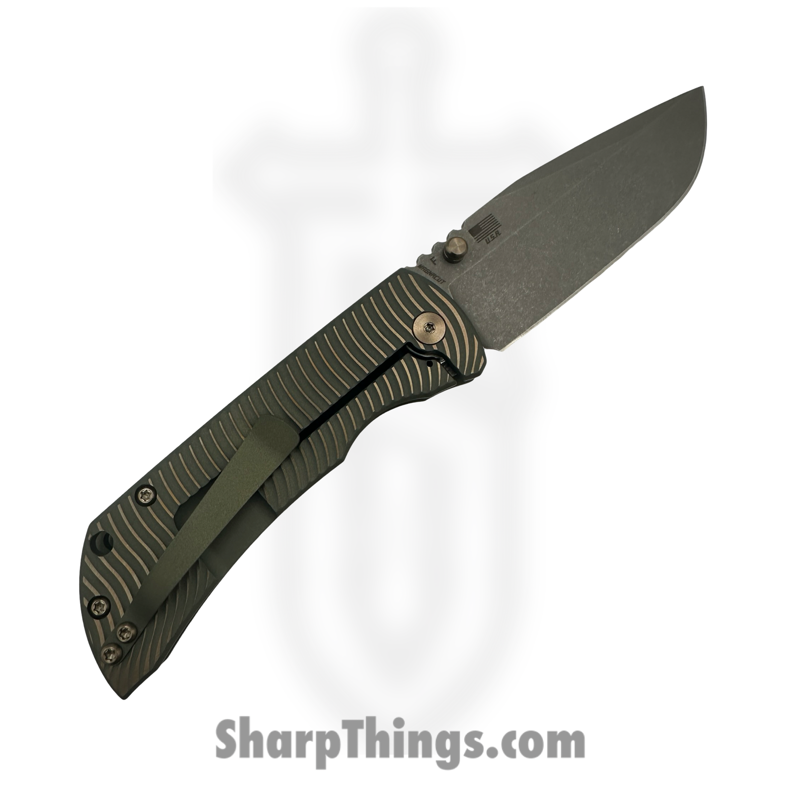 MAC 2 3.5 Swerve – Folding Knife – CPM MagnaCut Stonewash Drop Point – Titanium – Green Bronze