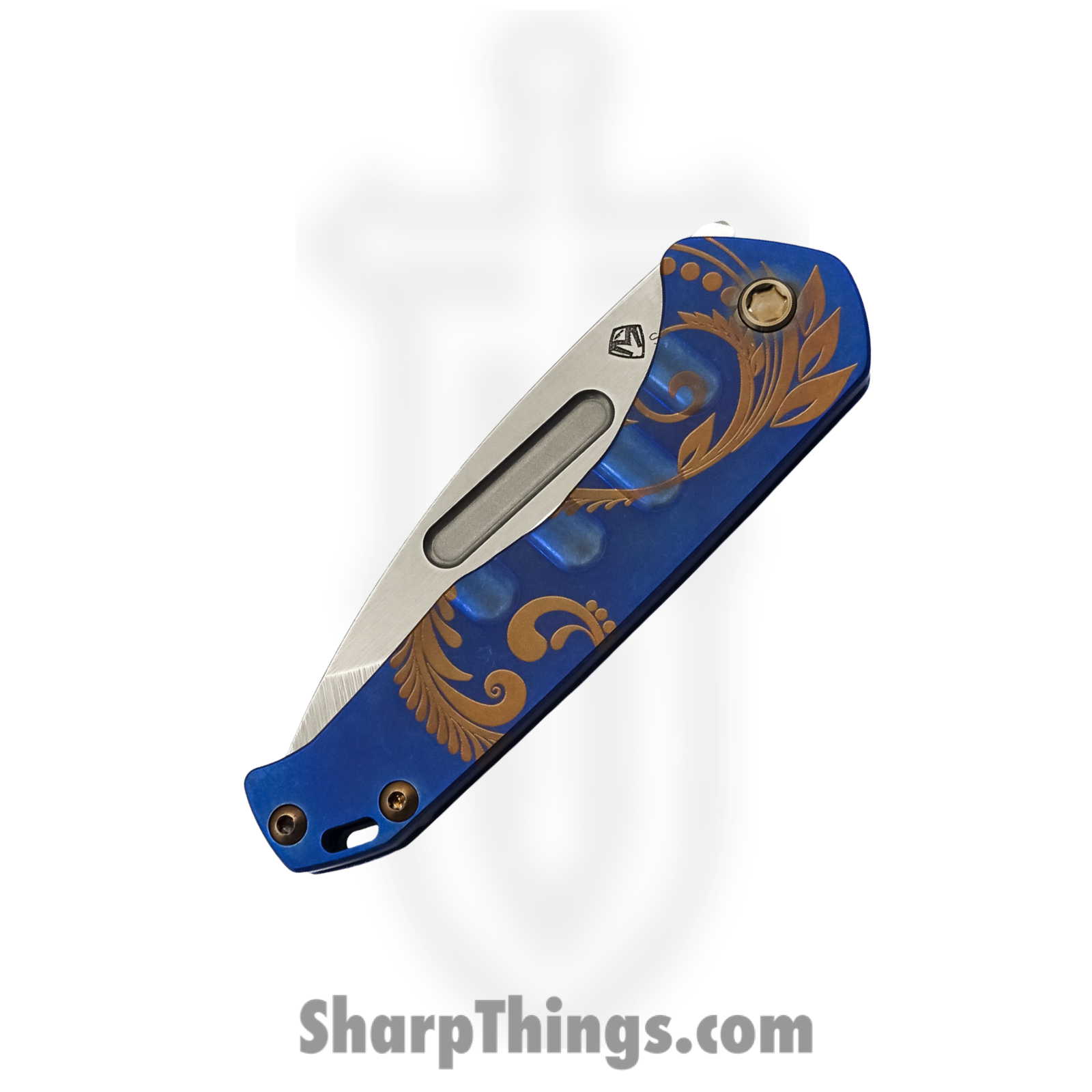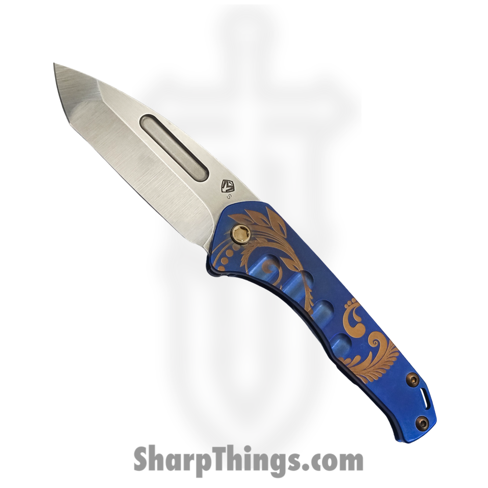Medford Knife – MK208STT-37A2-T1C1-Q4 – Praetorian Slim Tubled Tanto Folding Knife – S35VN Titanium – Blue Gold Filigree