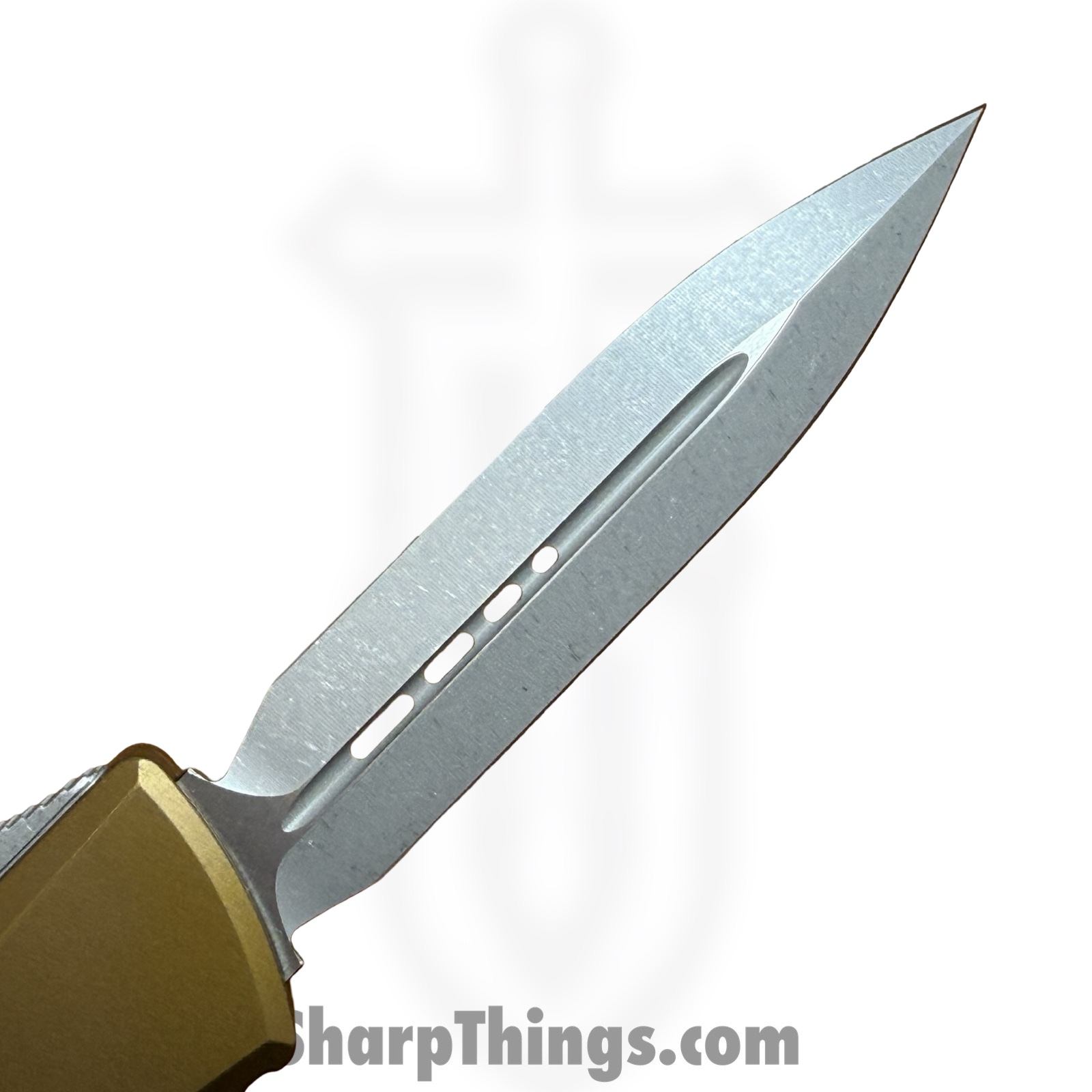 The Microtech Combat Troodon Gen III 1142-10APTA brings together the newest evolution of Microtech’s flagship OTF platform with a rugged apocalyptic double-edge blade and a tan anodized aluminum chassis. Designed for users who demand reliable performance, authoritative action, and a full-size out-the-front configuration, the Gen III series introduces refined internal geometry and improved deployment consistency through Microtech’s upgraded dual-fuel drive system. The result is smoother operation, stronger lockup, and exceptional reliability under repeated use.