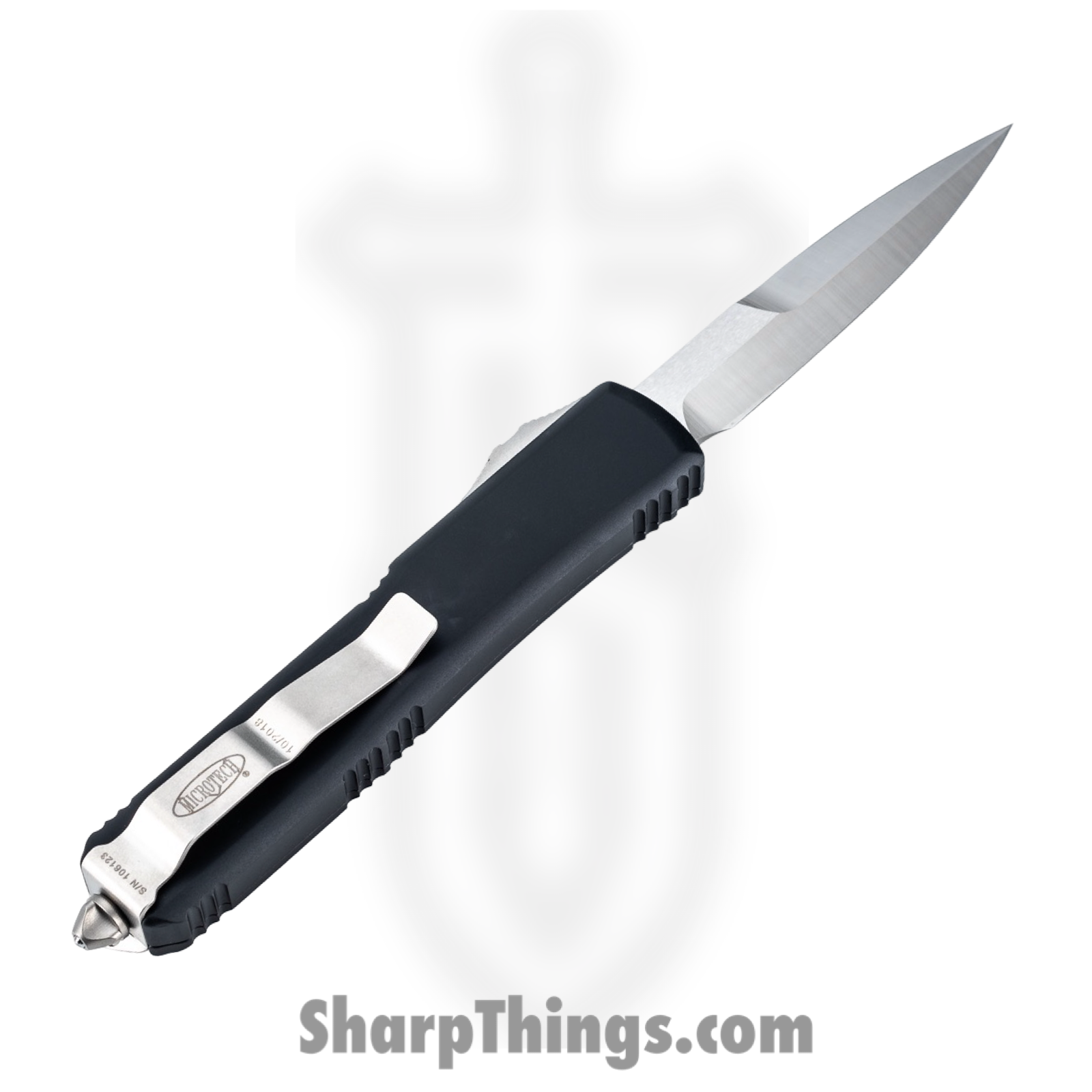 Microtech – 120-4 – Ultratech – OTF Auto – Elmax, M390, 204P Satin Bayonet – 6061-T6 Aluminum – Black