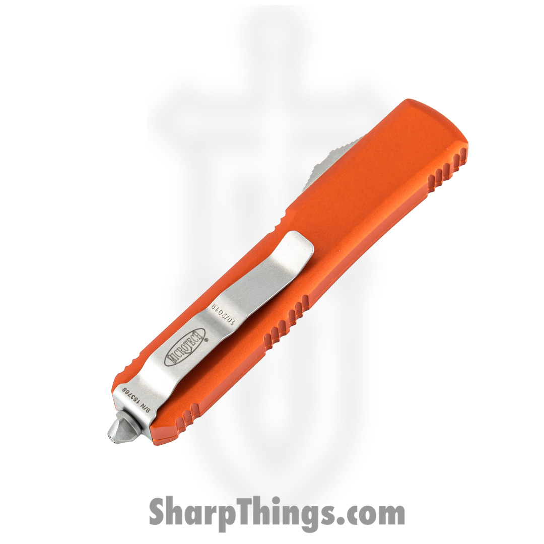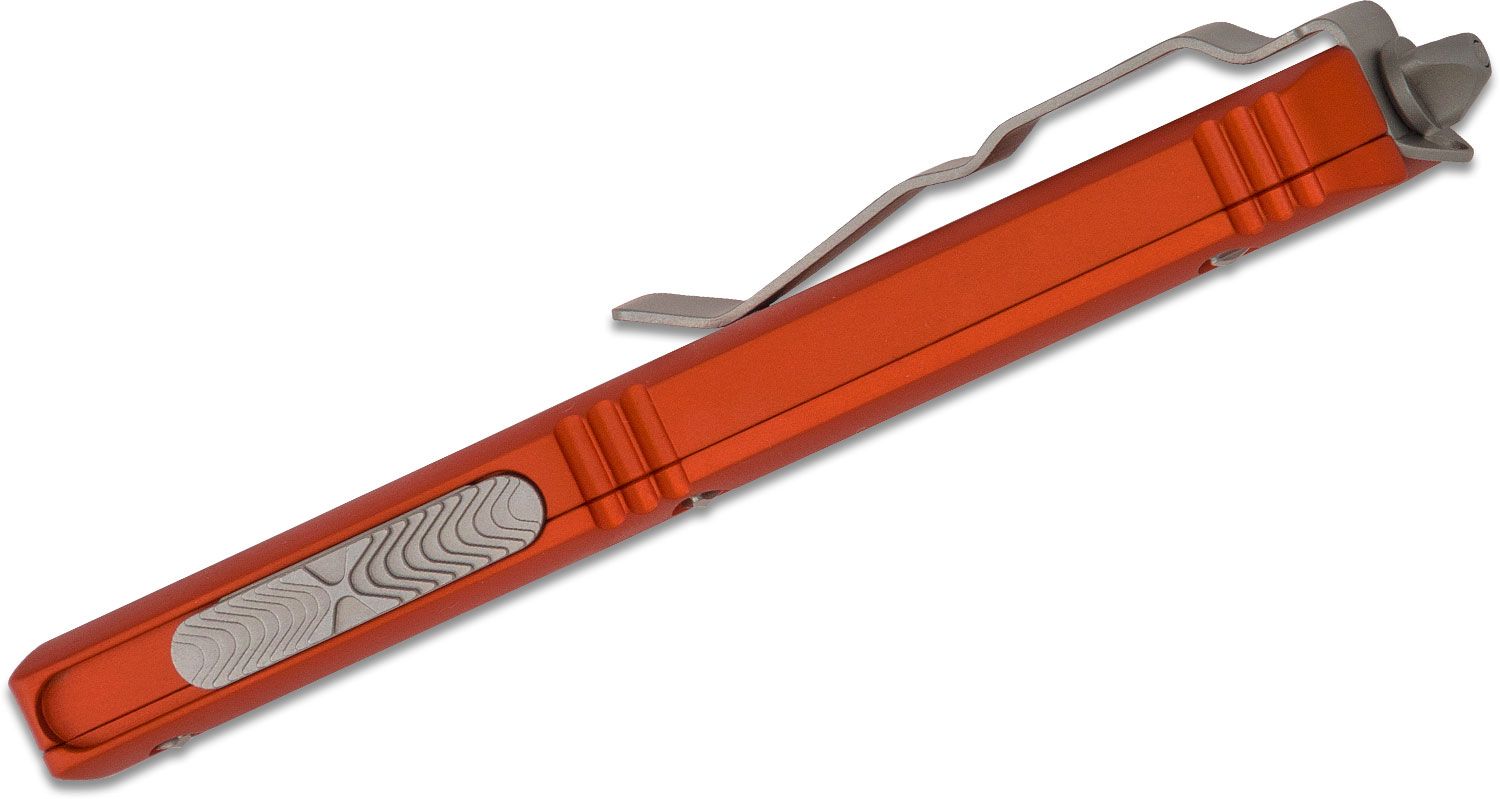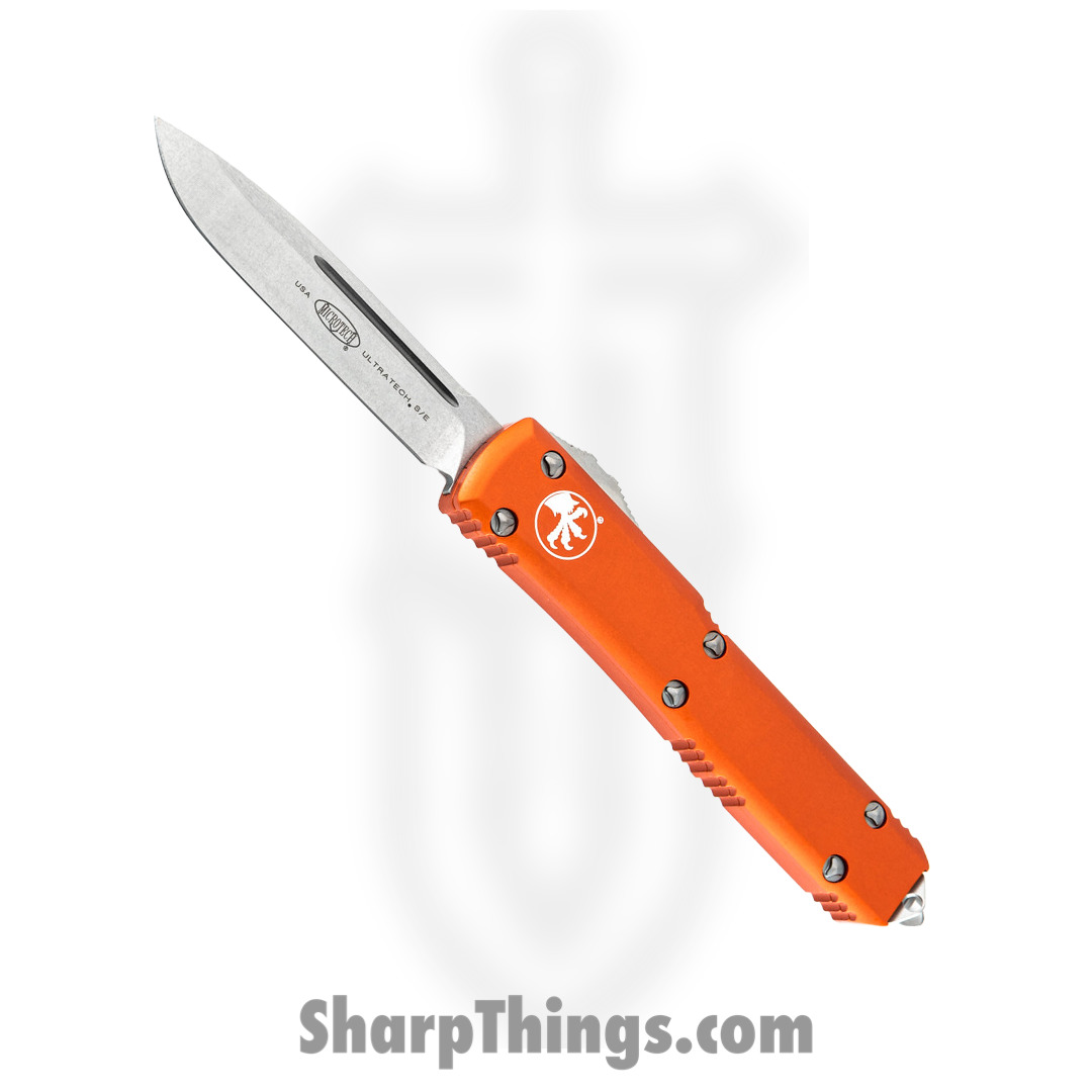 Microtech – 121-10OR – Ultratech – OTF Auto – Elmax, M390, 204P Stonewash Drop Point – 6061-T6 Aluminum – Orange