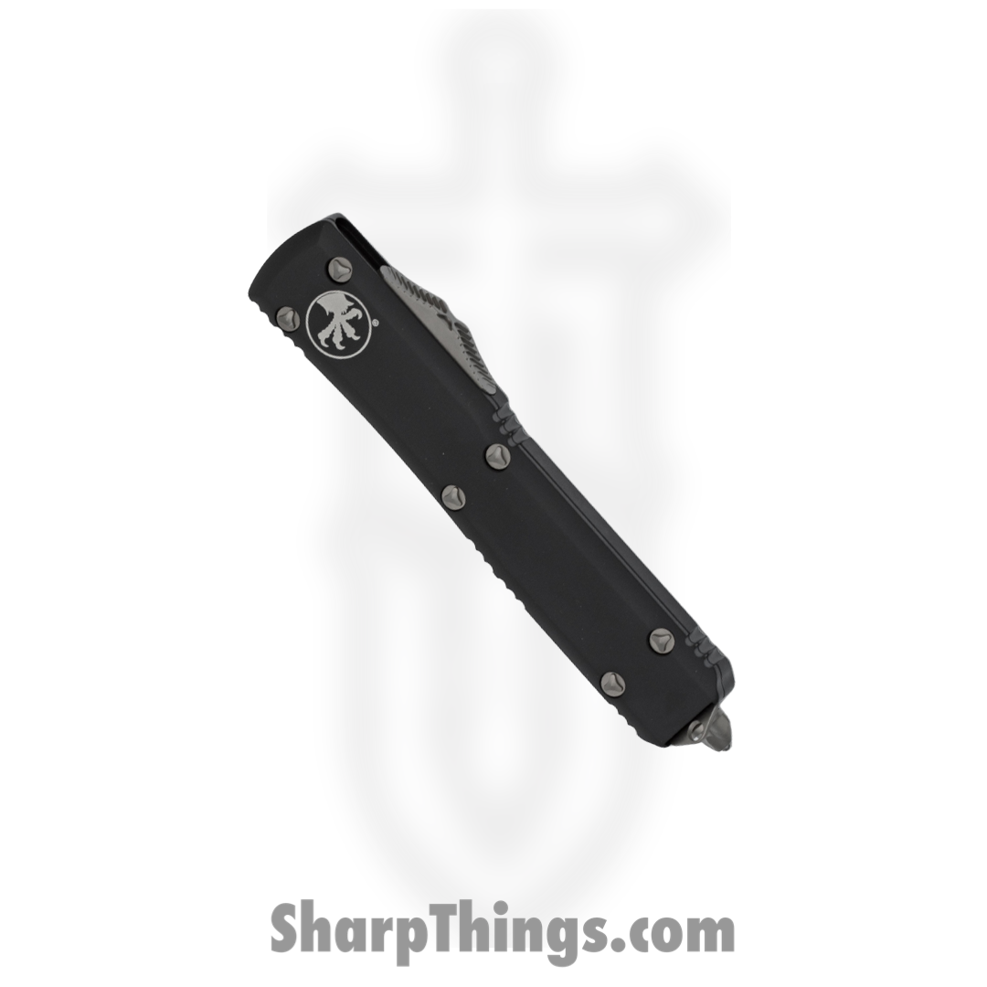 Microtech – 121-12 – Ultratech – OTF Auto – Elmax, M390, 204P Stonewash Drop Point – 6061-T6 Aluminum – Black