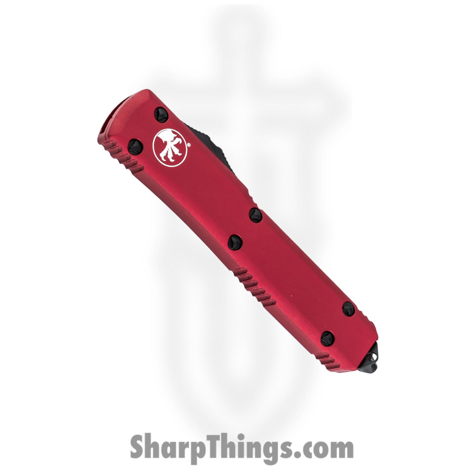 Microtech – 148-1RD – UTX-70 – OTF Auto – Elmax, M390, 204P Two Tone Drop Point – 6061-T6 Aluminum – Red
