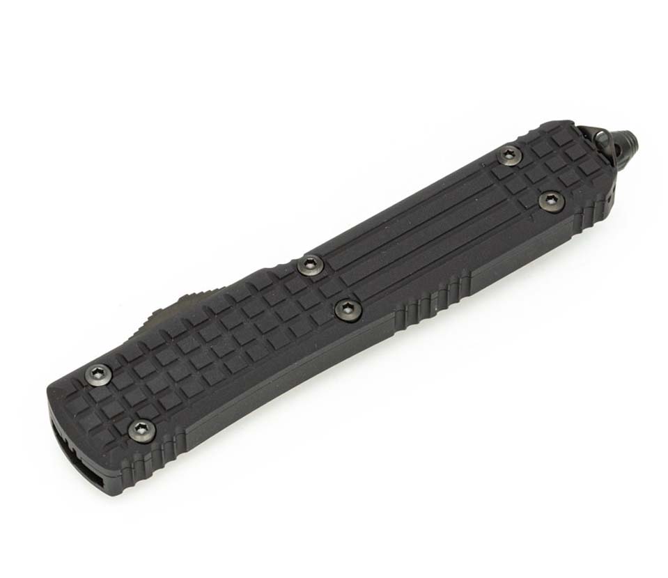 Microtech – 148-11 – UTX-70 – OTF Auto – Elmax, M390, 204P Stonewash Drop Point – 6061-T6 Aluminum – Black