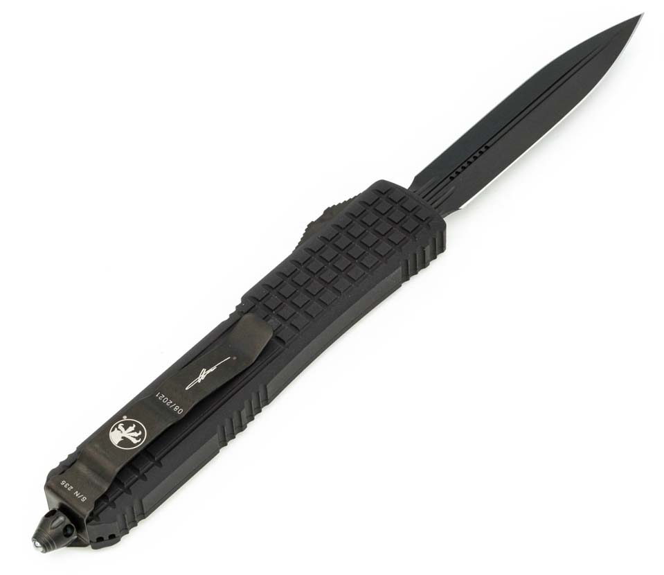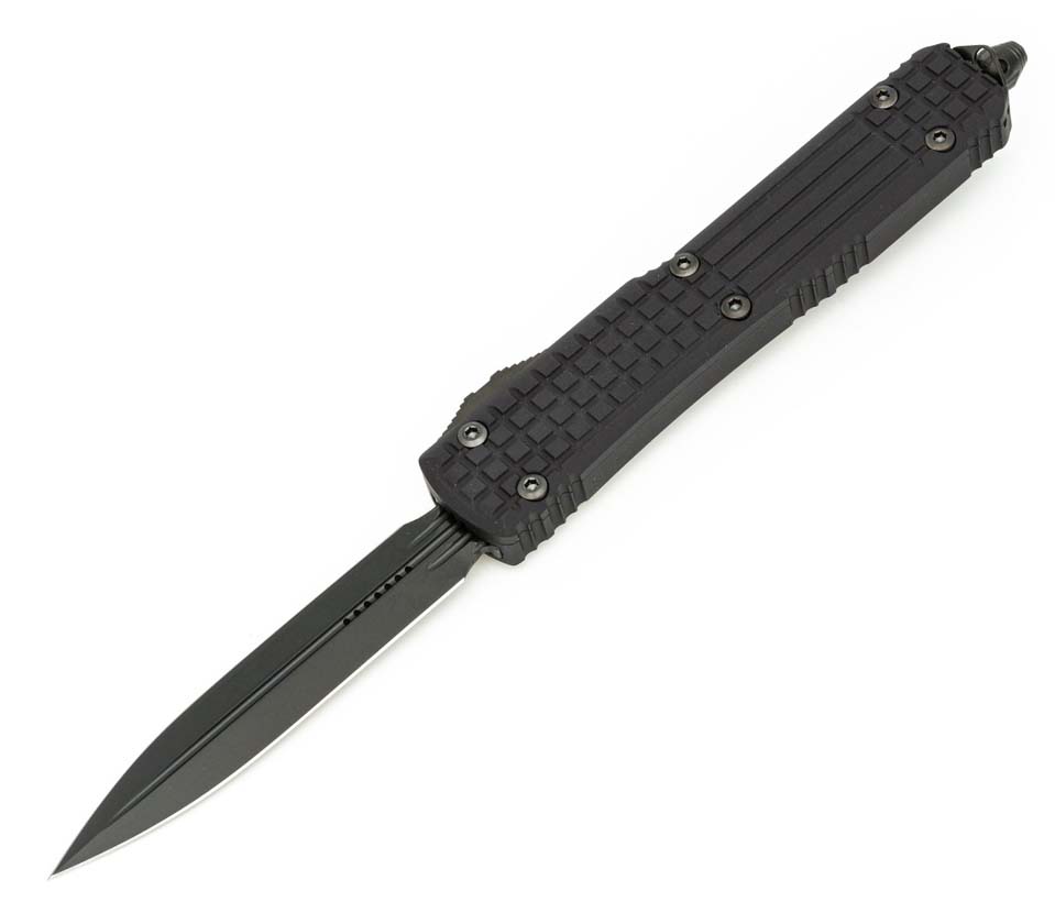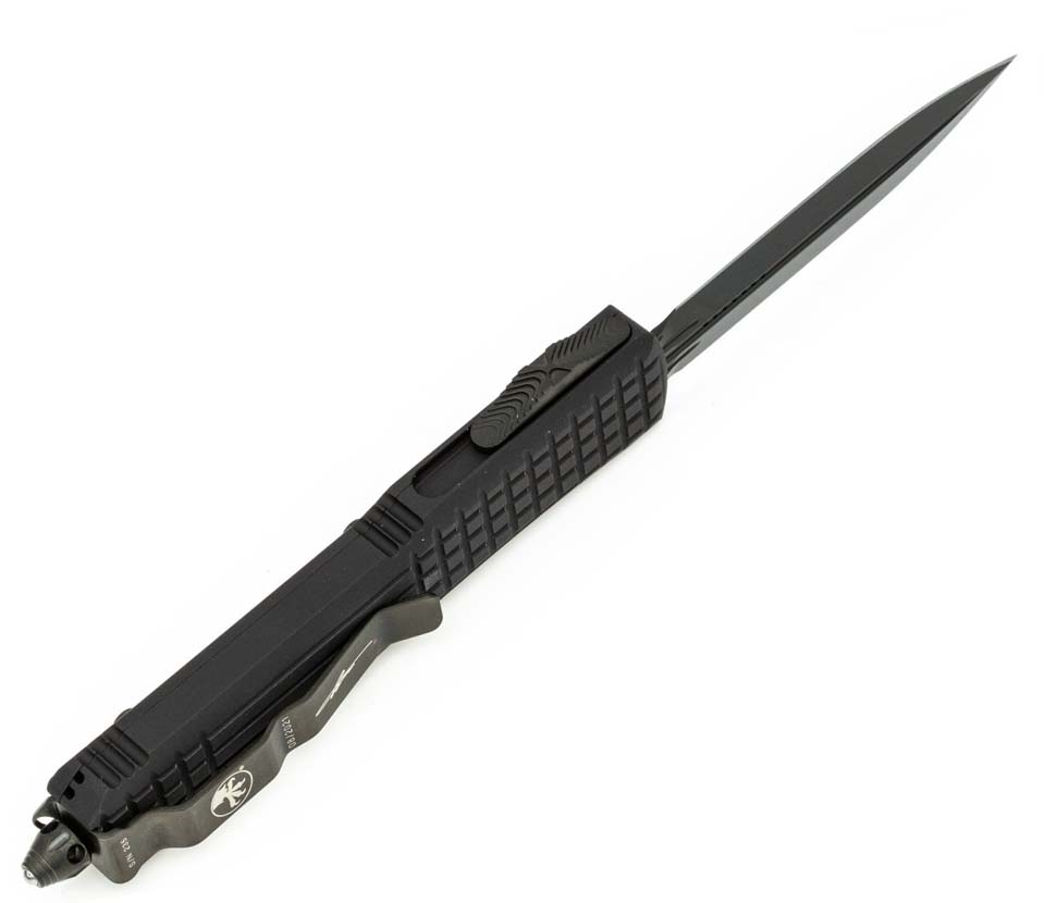 Microtech – 122-1UT-DSH – Ultratech Shadow Frag – OTF Auto – Elmax, M390, 204P Coated Dagger – 6061-T6 Aluminum – Black