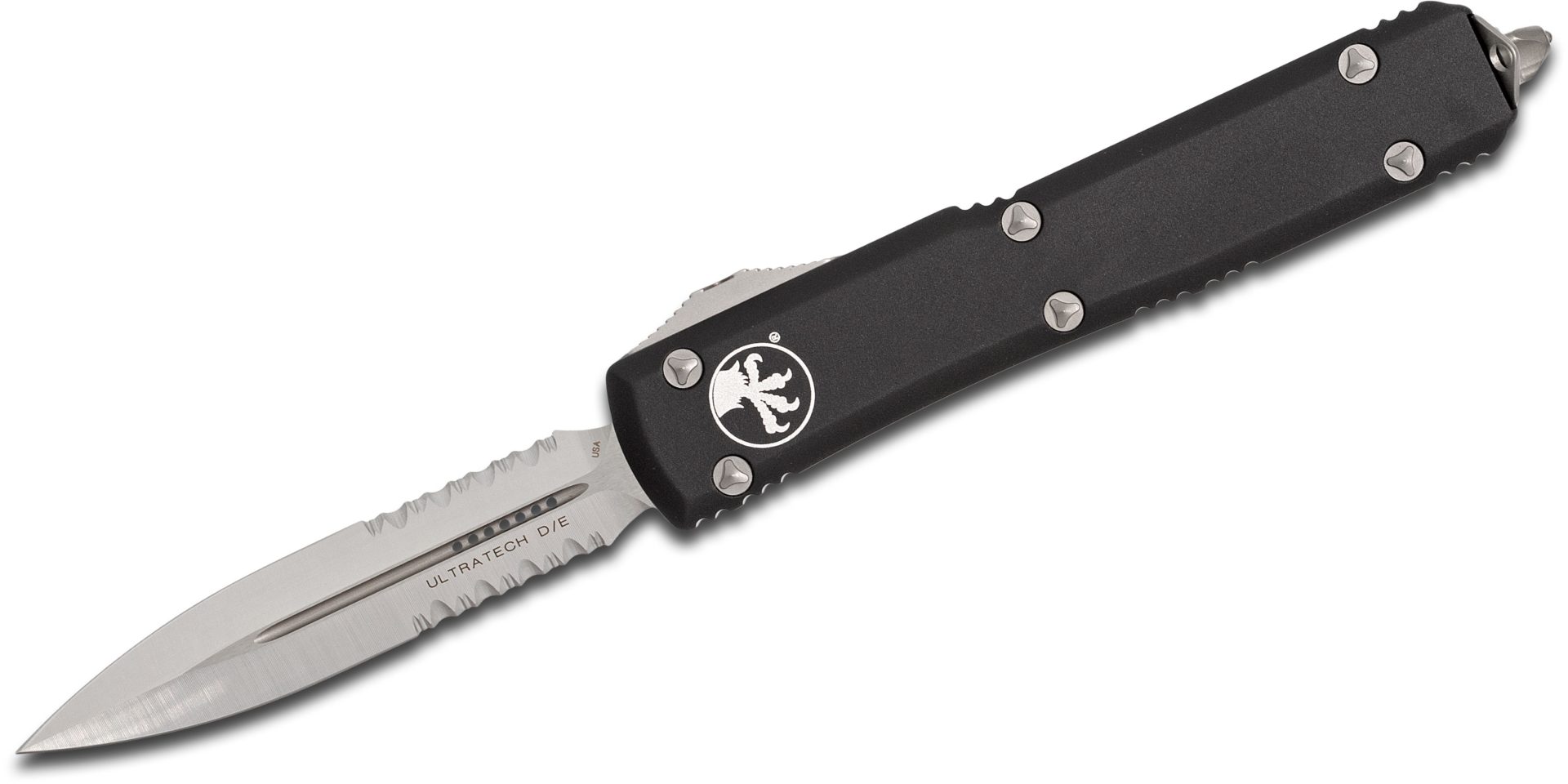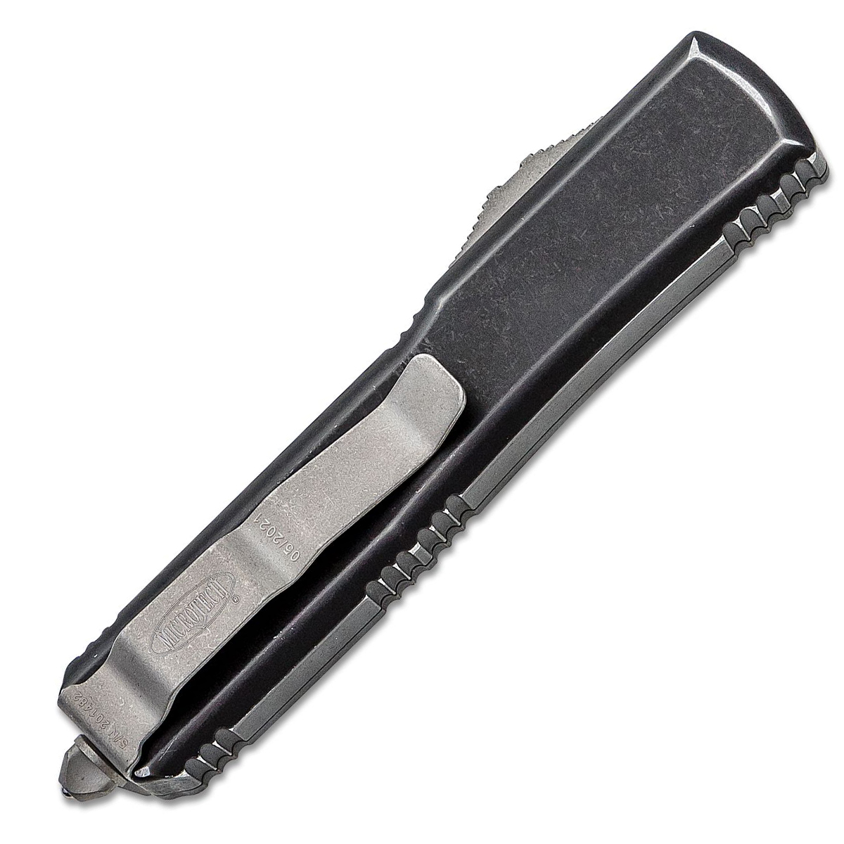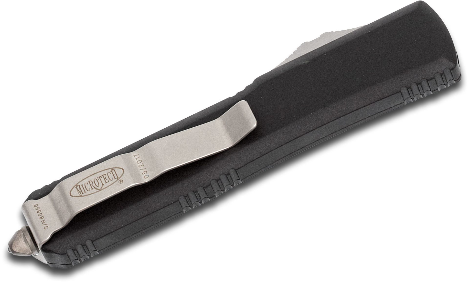Microtech – 122-5 – Ultratech – OTF Auto – Elmax, M390, 204P Satin Dagger – 6061-T6 Aluminum – Black