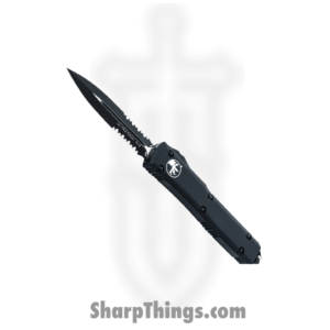 Microtech – 122-2T – Ultratech D/E Partially Serrated – OTF Auto – M390 Black Dagger – 6061-T6 Aluminum – Black