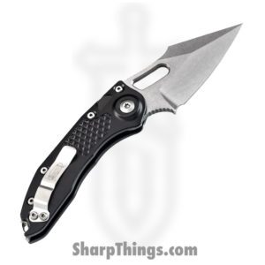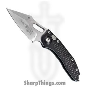Microtech – 169-10 – Stitch – Automatic Knife – Elmax, M390, 204P Stonewash Spear Point – 6061-T6 Aluminum – Black