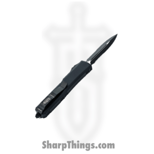 Microtech – 122-2T – Ultratech D/E Partially Serrated – OTF Auto – M390 Black Dagger – 6061-T6 Aluminum – Black