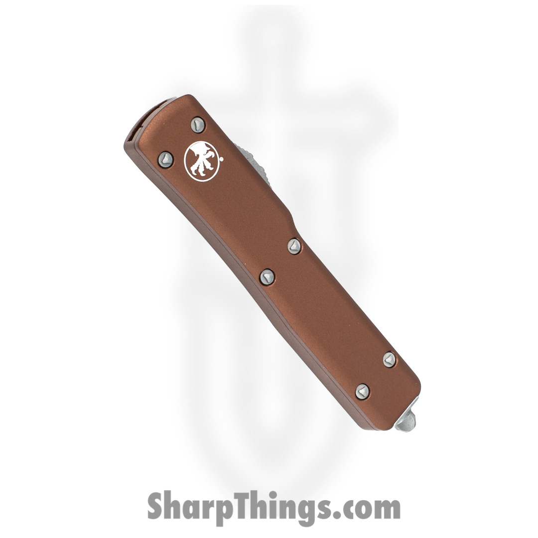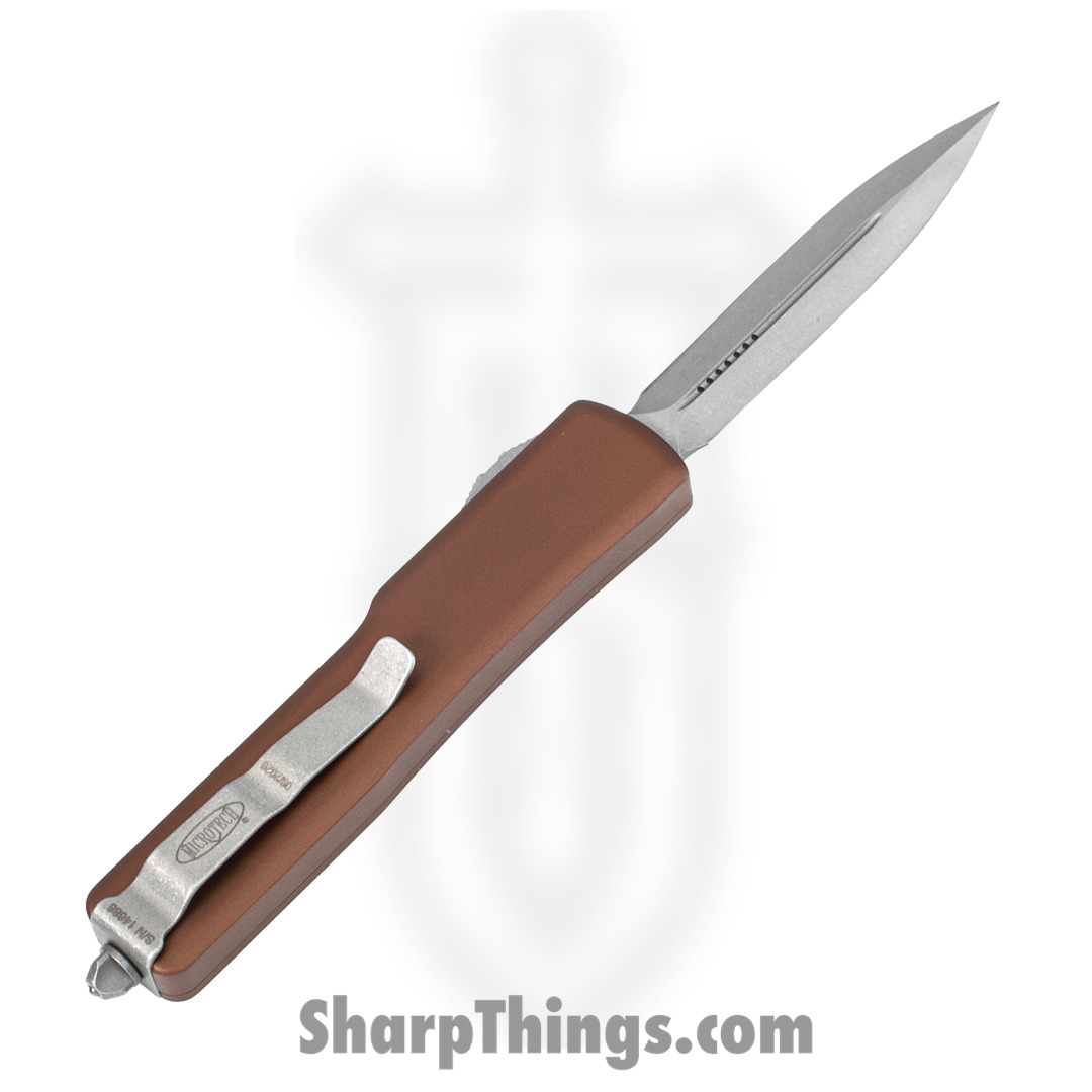 Microtech – 147-10APTA – UTX-70 – OTF Auto – Elmax, M390, 204P Stonewash Dagger – 6061-T6 Aluminum – Tan