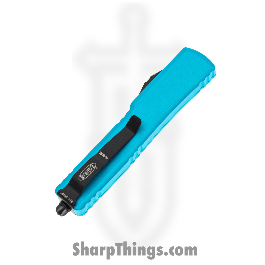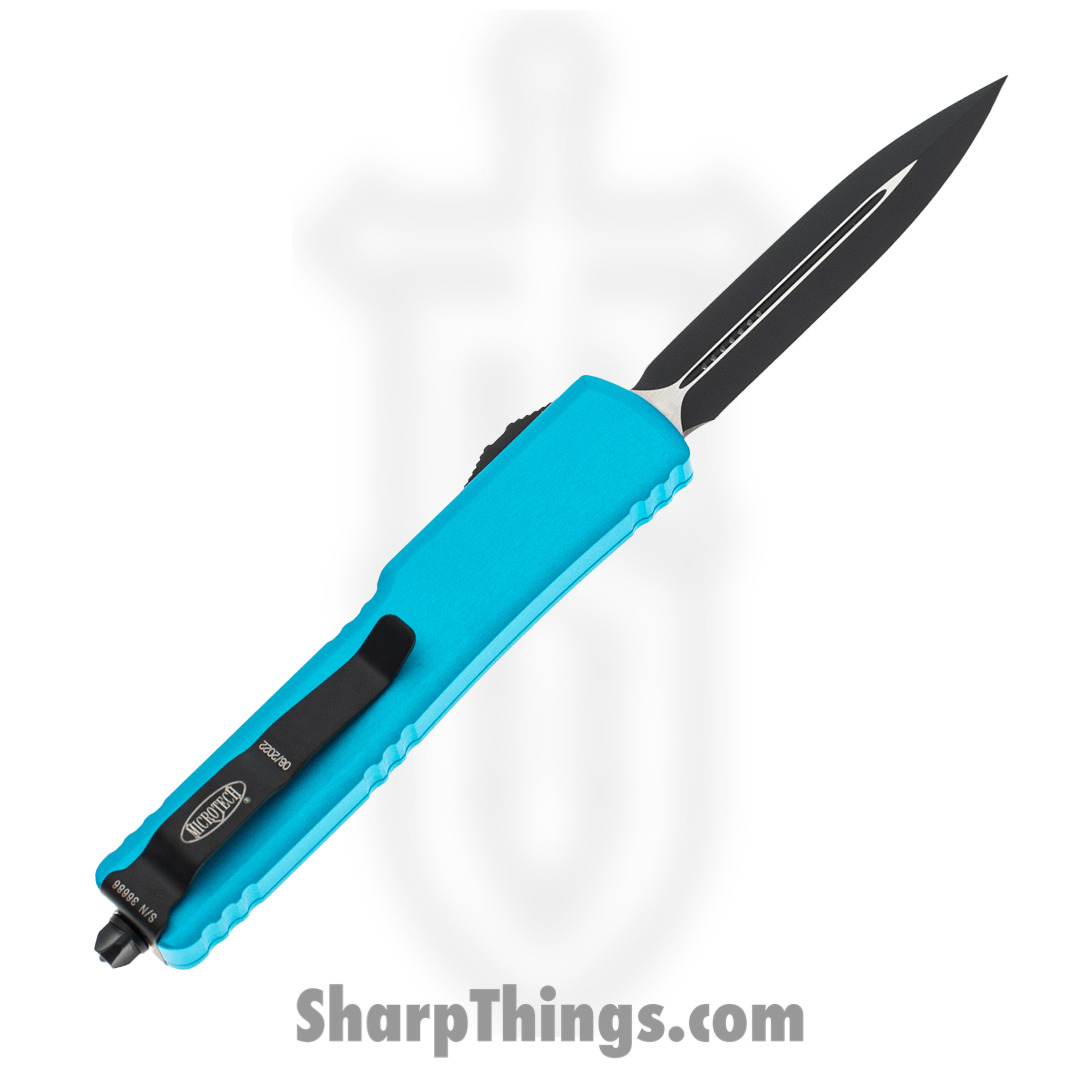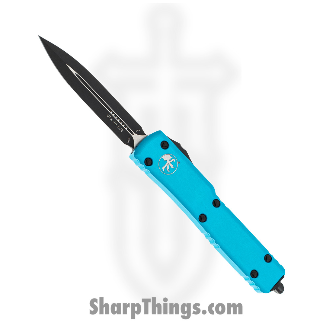 Microtech – 147-1TQ – UTX-70 – OTF Auto – Elmax, M390, 204P Coated Dagger – 6061-T6 Aluminum – Turquoise