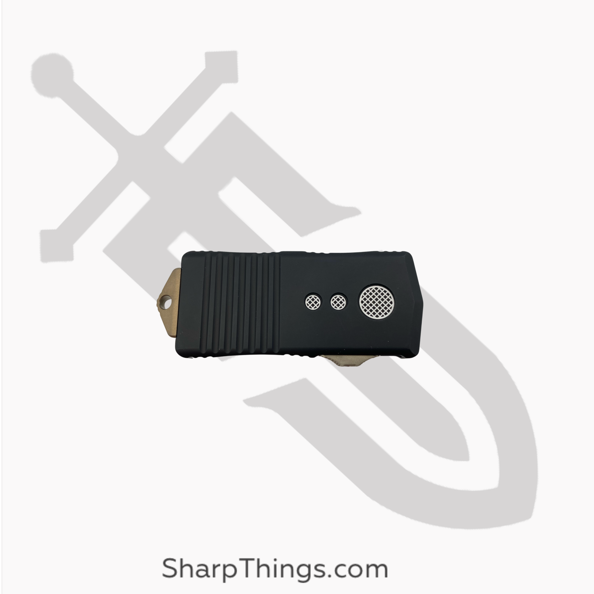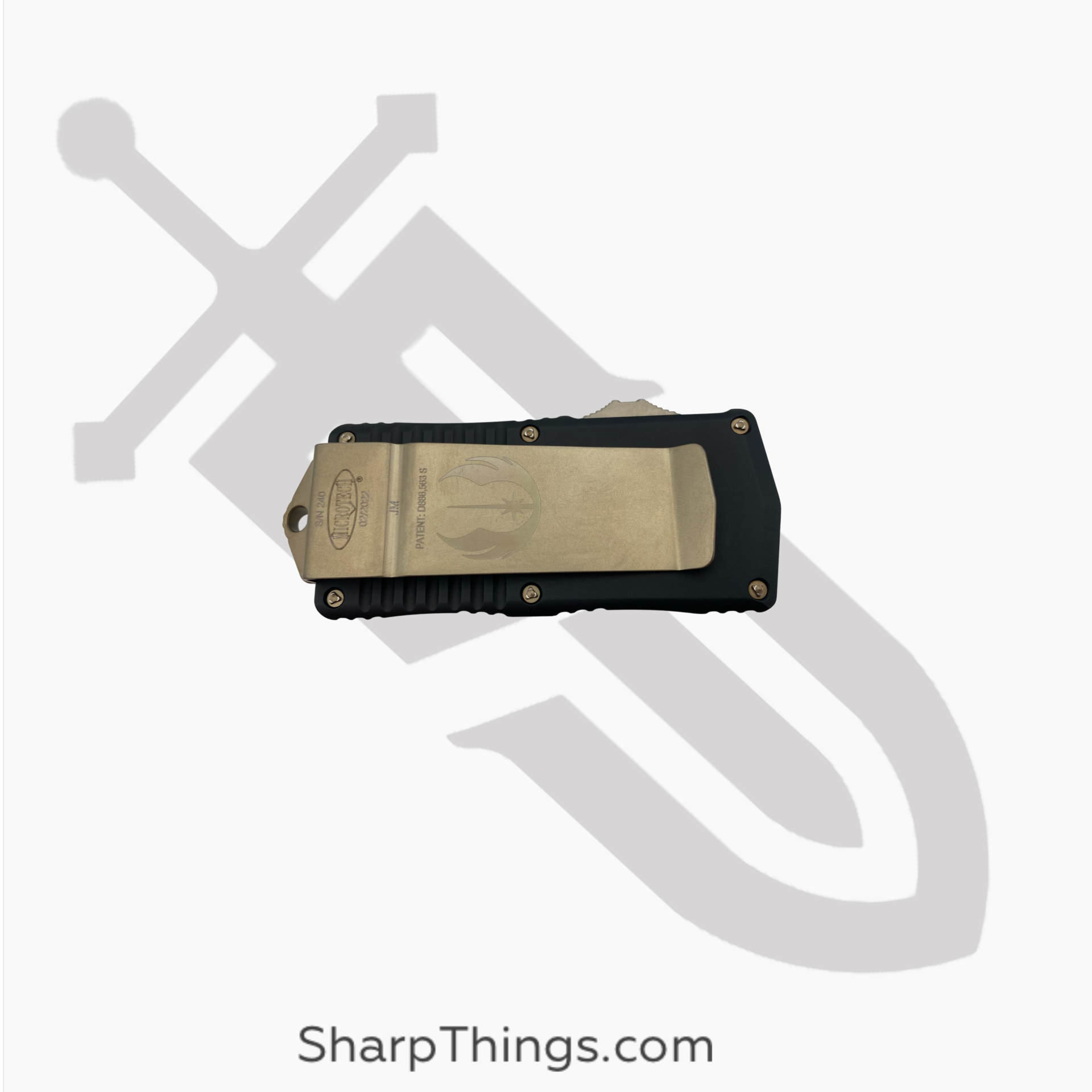 Microtech – 157-1JM – Exocet Money Clip Jedi Master – OTF Auto – CTS-204P Coated Dagger – 6061-T6 Aluminum – Black/Gold