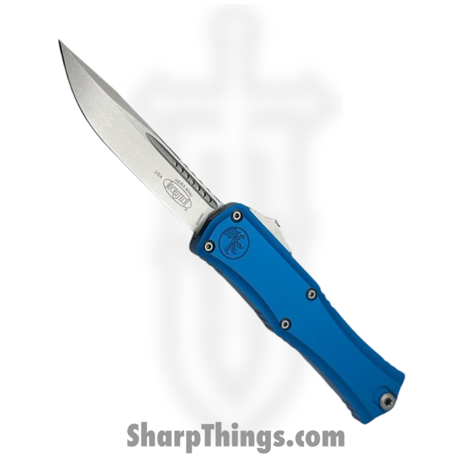 Microtech – 1703M-10BL – Mini Hera II – OTF Auto – M390MK Stonewash Drop Point – Aluminum – Blue
