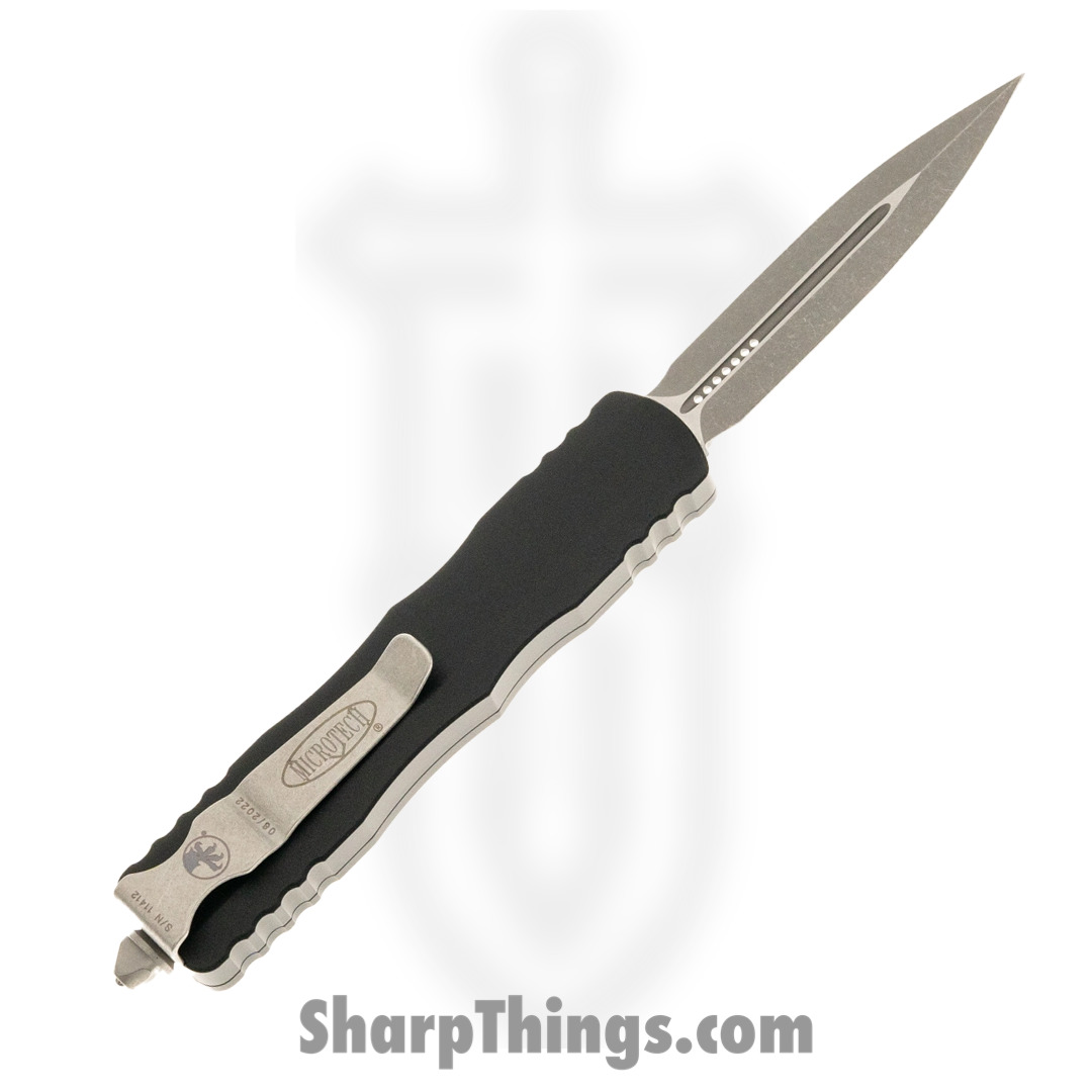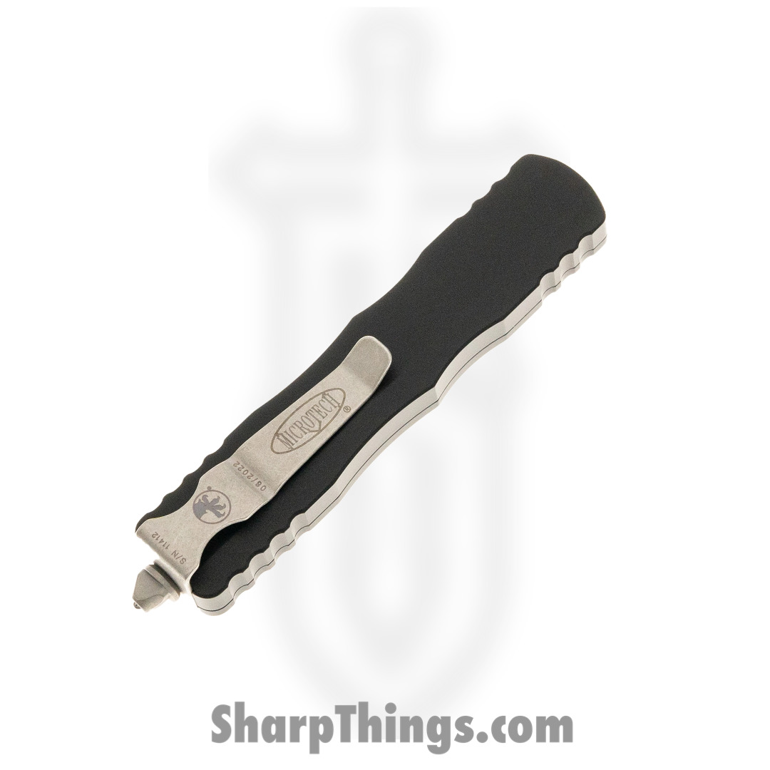 Microtech – 148-11 – UTX-70 – OTF Auto – Elmax, M390, 204P Stonewash Drop Point – 6061-T6 Aluminum – Black