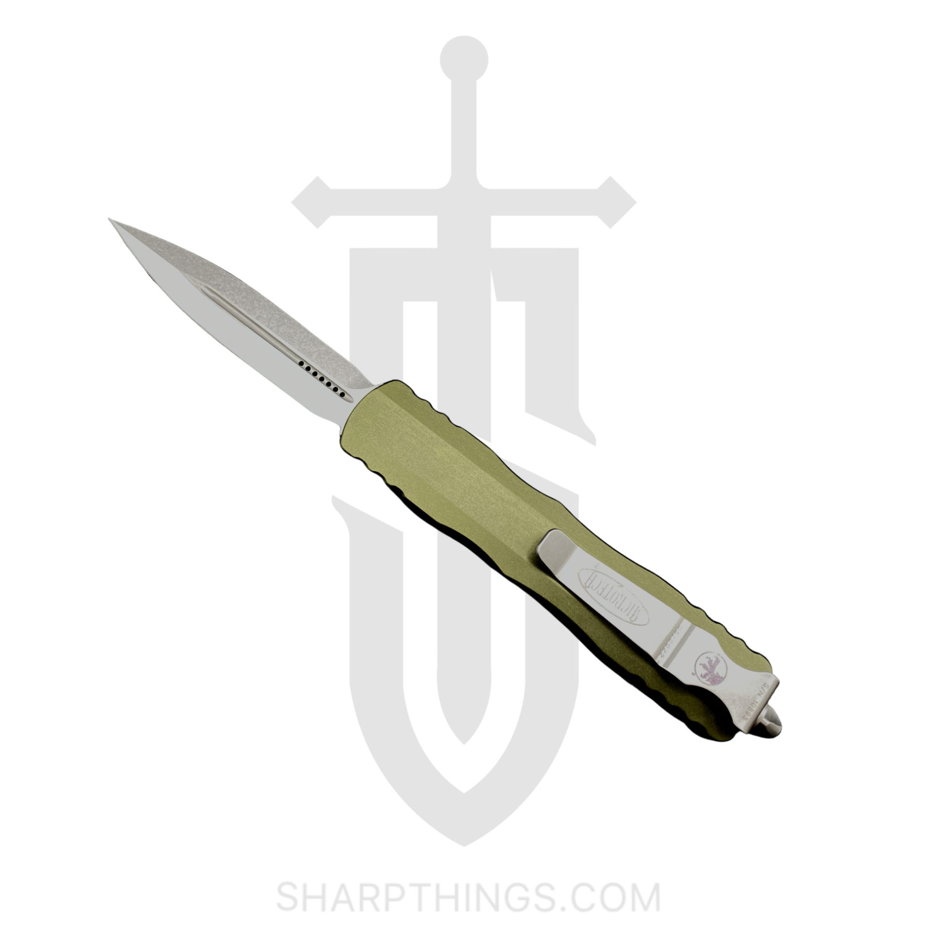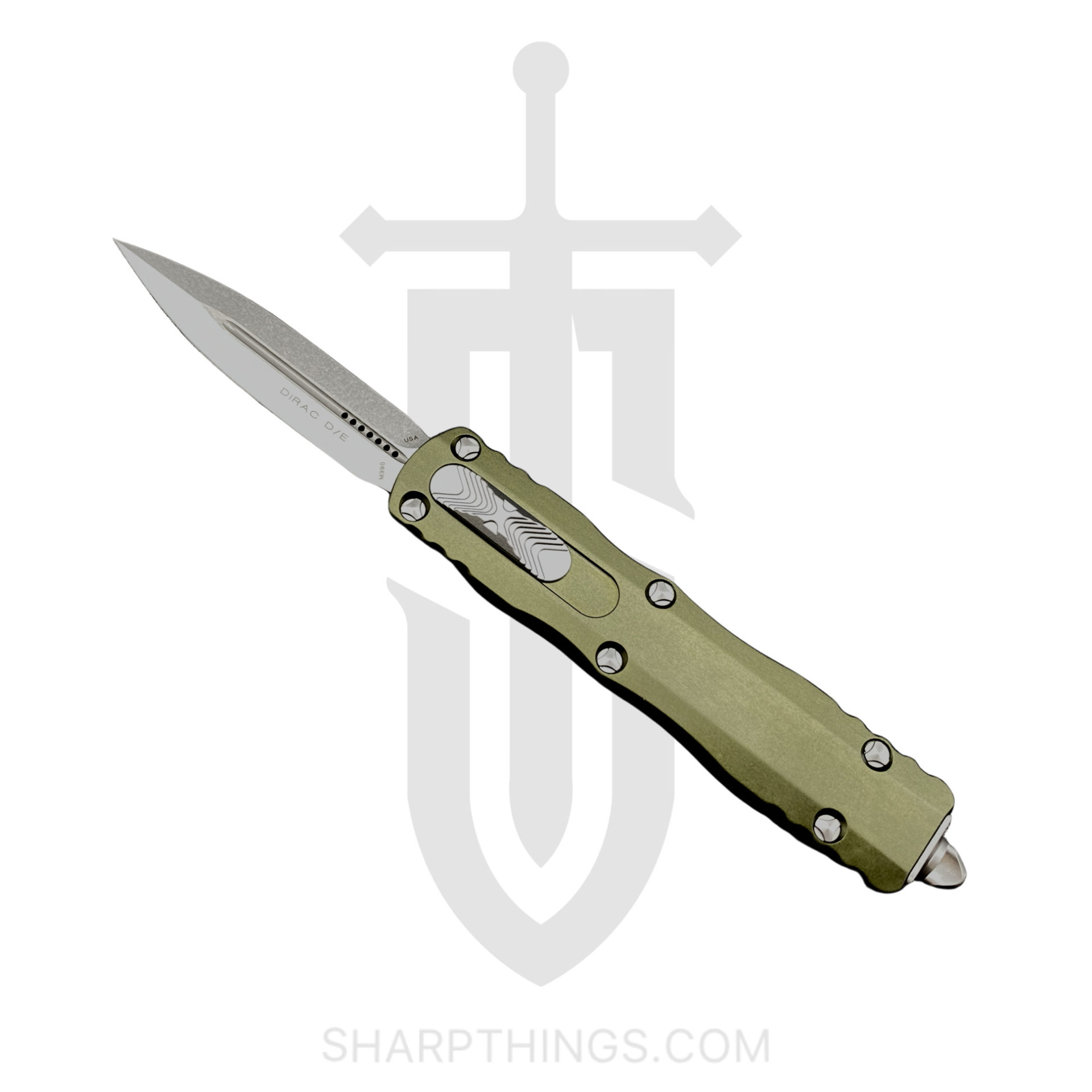 Microtech – 225-10OD – Dirac D/E – OTF Auto – Stonewash Dagger – 6061-T6 Aluminum – OD Green