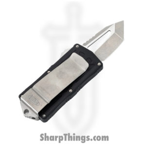 Microtech – 158-10 – Exocet Money Clip – OTF Auto – M390 Stonewash Modified Tanto – 6061-T6 Aluminum – Black