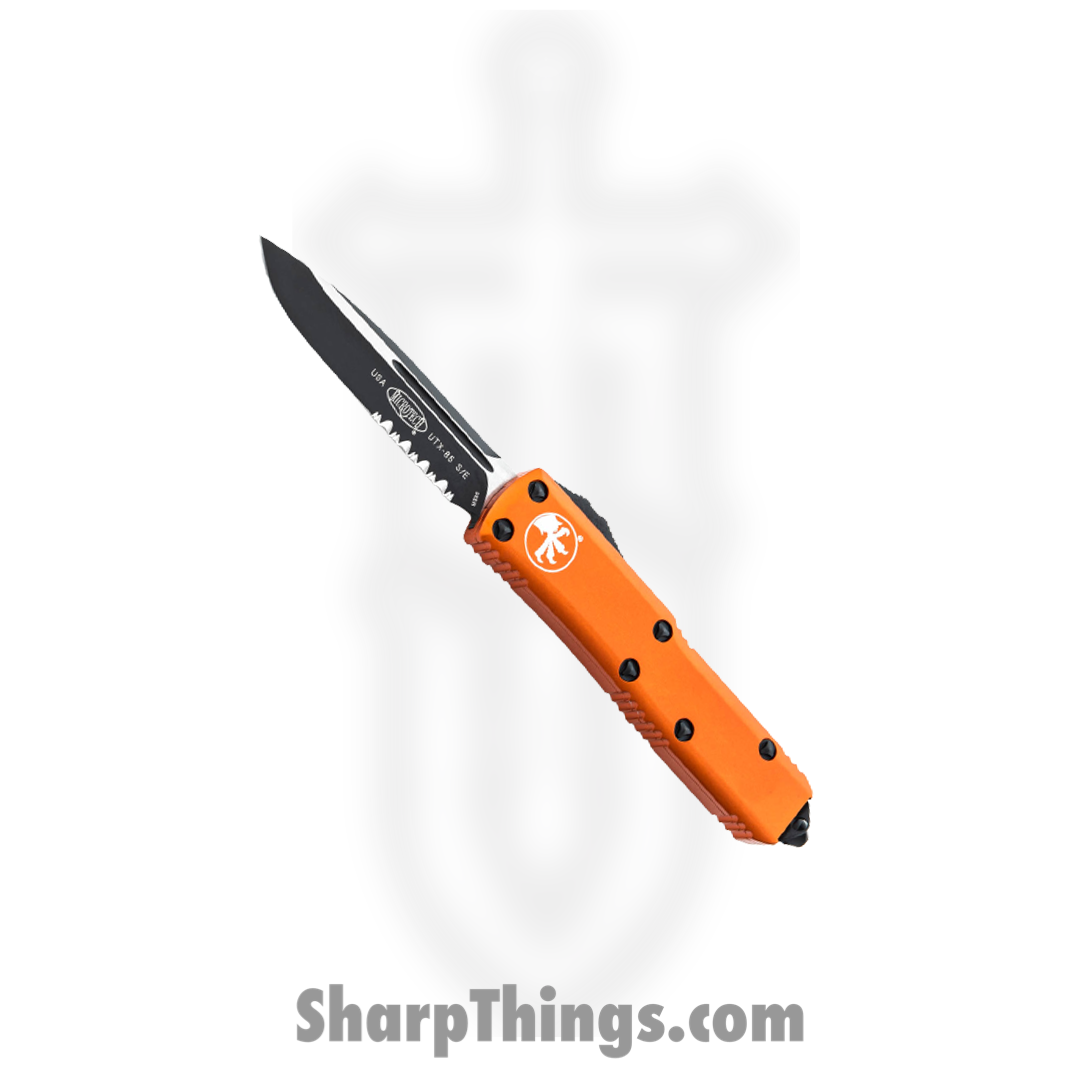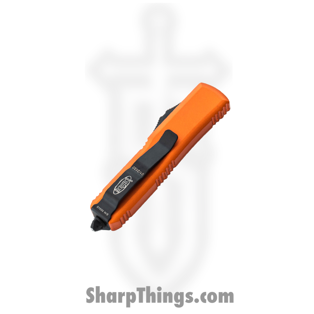 Microtech – 231-2OR – UTX-85 – OTF Auto – Elmax, M390, 204P Two Tone Drop Point – 6061-T6 Aluminum – Orange