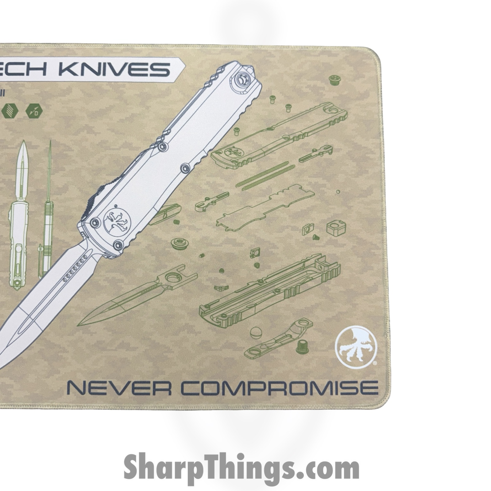 Perfect for wrenching on your gear, cleaning internals, or just setting a dramatic backdrop for your latest grail post, this mat adds a whole new level of Microtech pride to your setup. The non-slip rubber construction keeps everything locked in, while protecting your blades from scuffs and scratches.