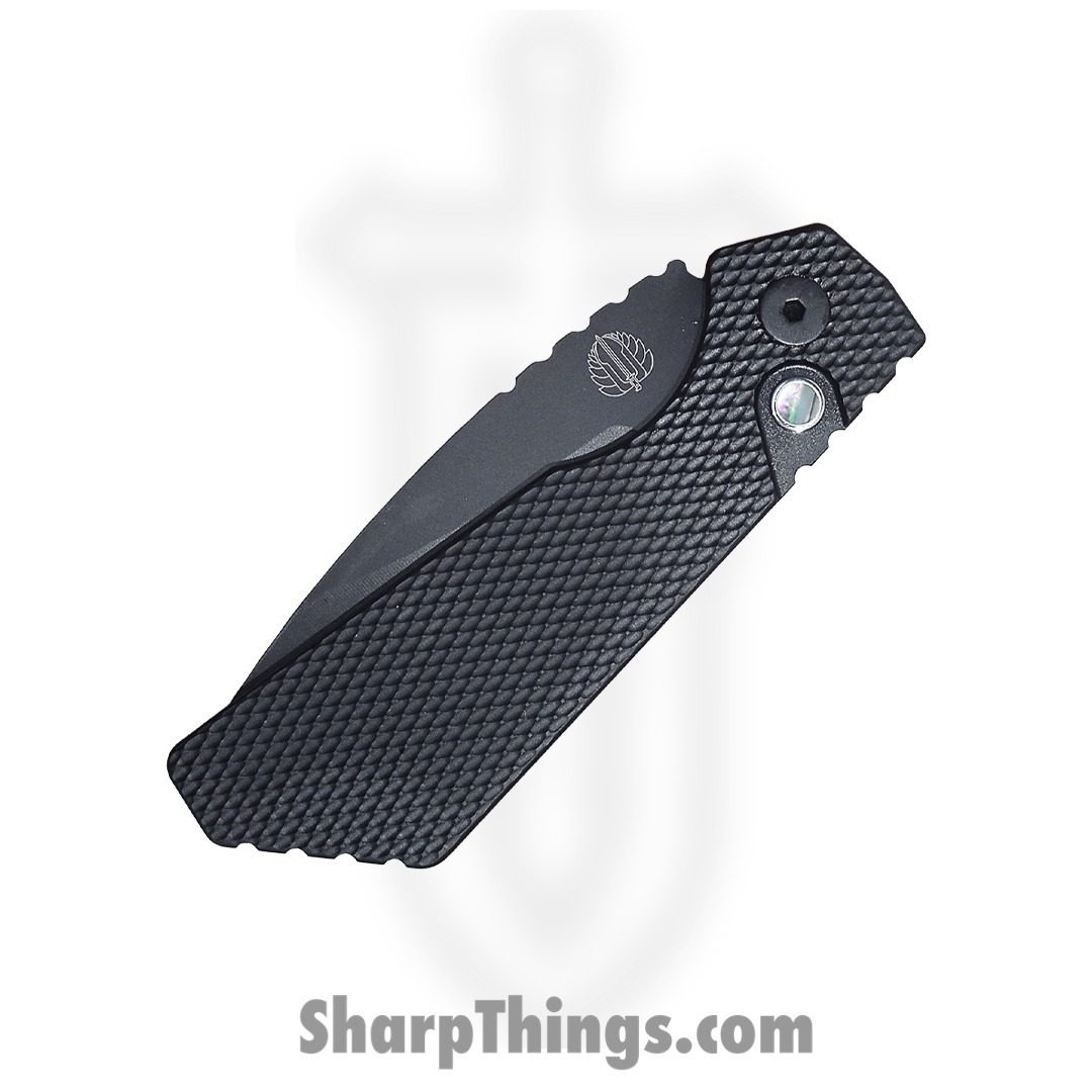 ProTech – PTBSTX23PT+ – 2023 Blade Show Texas Strider PT+ – Automatic Folding Knife – DLC Mangnacut – Textured Black – Abalone Button