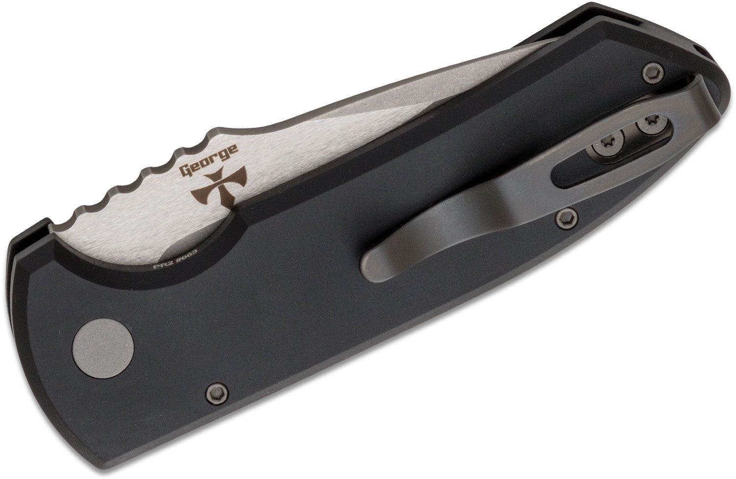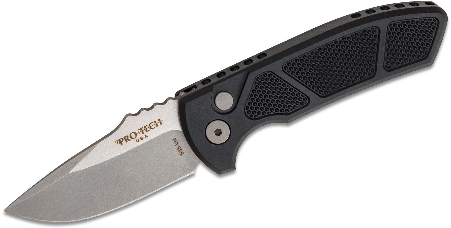 ProTech – LG405 – Les George Short Bladed Rockeye – Automatic Knife – S35VN Stonewash Drop Point – Aluminum – Black