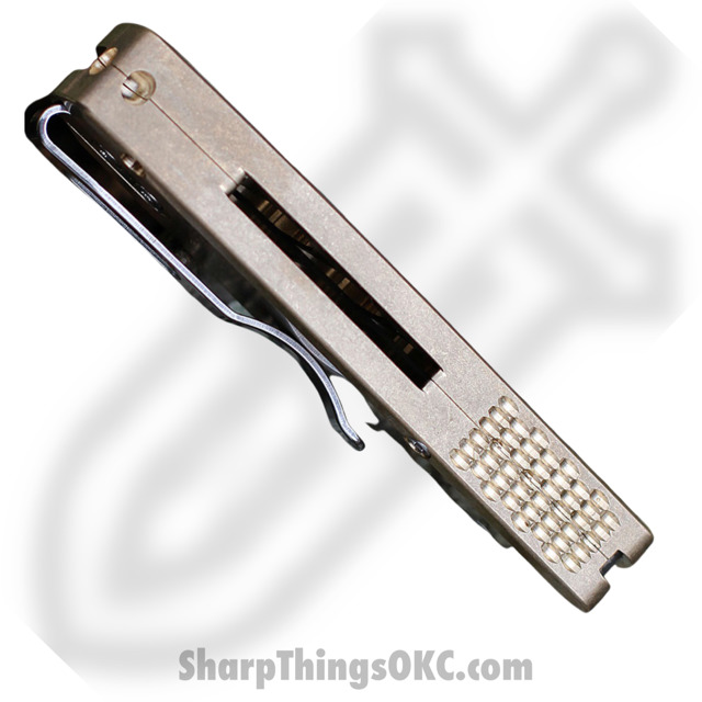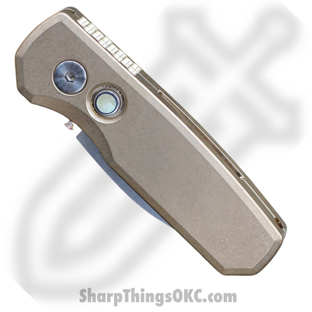 Pro-Tech Knives is proud to be the first choice of Police and Military professionals around the world. Pro-Tech Knives are built to serve and serve well. The Runt 5 is a compact Automatic with a fast-firing blade in a very concealable and easily carried design. This model features an aluminum frame and 1.94″ Wharncliffe blade made from stonewashed CPM-20CV stainless steel with a stonewashed bronze aluminum handle. Pro-Tech has one of the fastest firing blades in the business; just depress the actuation button, then stand back and watch the show. The action is snappy, authoritative, and extremely pleasing. Includes a pocket clip set up for right-hand, tip-down carry. *Handle finish subject to variances due to natural patina*