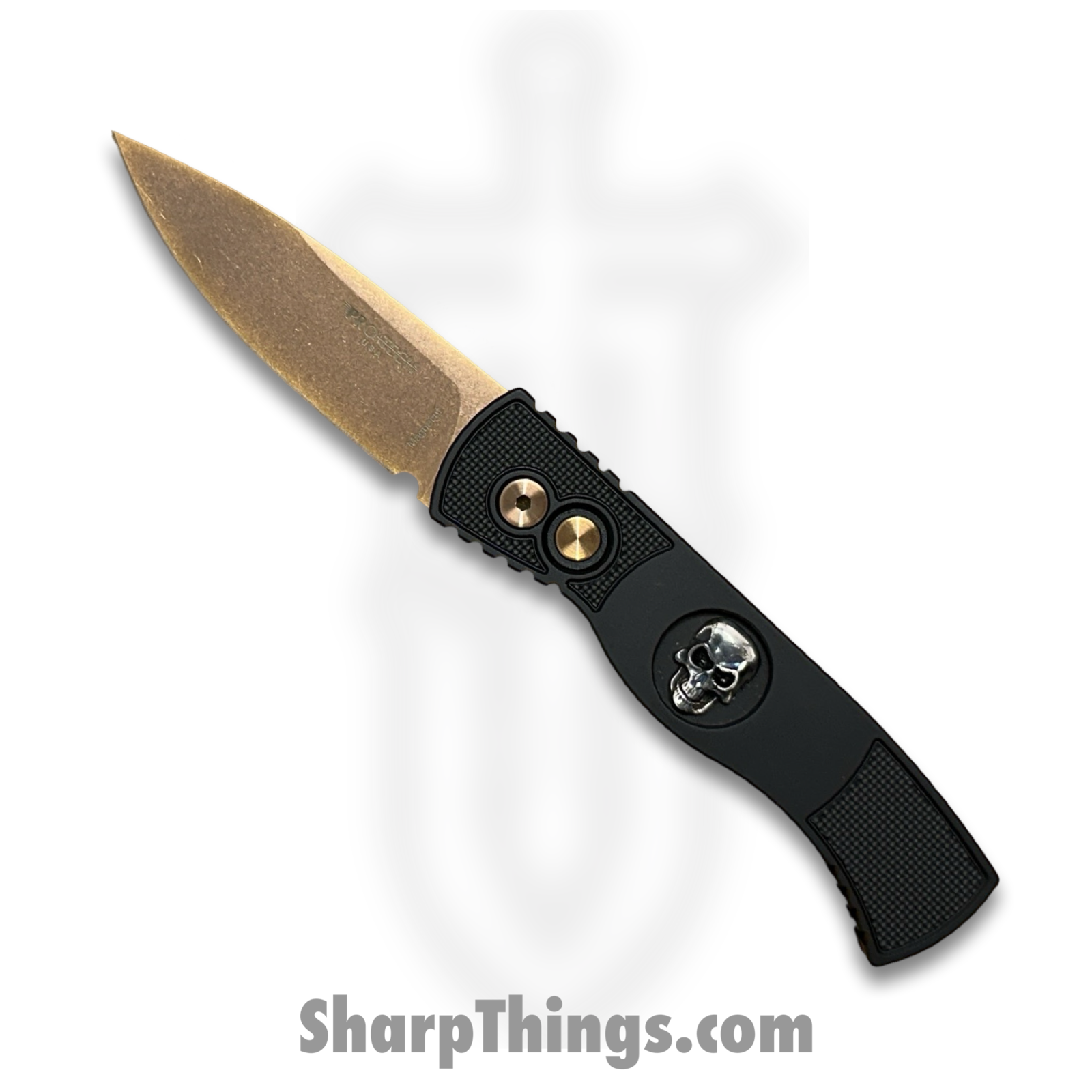 ProTech – TR-2 RG Skull – Tactical Response 2 – Automatic Knife – CPM MagnaCut Rose Gold Coated Drop Point – 6061-T6 Aluminum – Black