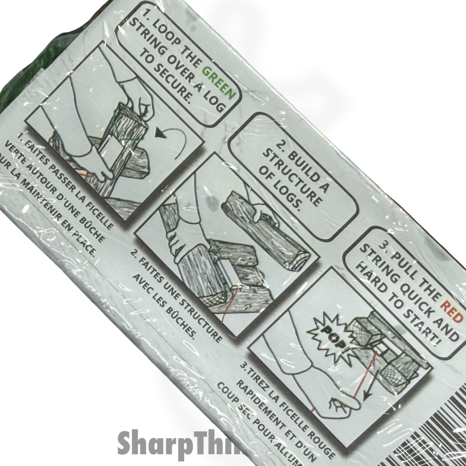 The PSF77302 Pull Start Fire is one of those rare innovations that turns a chore into a moment of satisfaction. Designed for reliable ignition in virtually any environment, this fire starter doesn’t rely on matches, lighters, or kindling—just pull the string, and within seconds, a powerful self-contained ignition system produces a roaring flame that lasts long enough to catch wood, charcoal, or damp fuel. Packaged in a compact white and red module that weighs just a few ounces, it’s the ideal addition to your camping pack, emergency kit, or bug-out bag. Each unit burns for roughly five minutes with a 2,000°F core flame, capable of lighting even wet logs or frozen fuel sources. It’s waterproof, windproof, and designed to perform under real-world survival conditions. Whether you’re lighting a campfire in the rain, starting a backyard grill, or preparing for the unexpected, the Pull Start Fire simplifies the process and performs when you need it most. No matches. No frustration. Just instant fire and total confidence.
