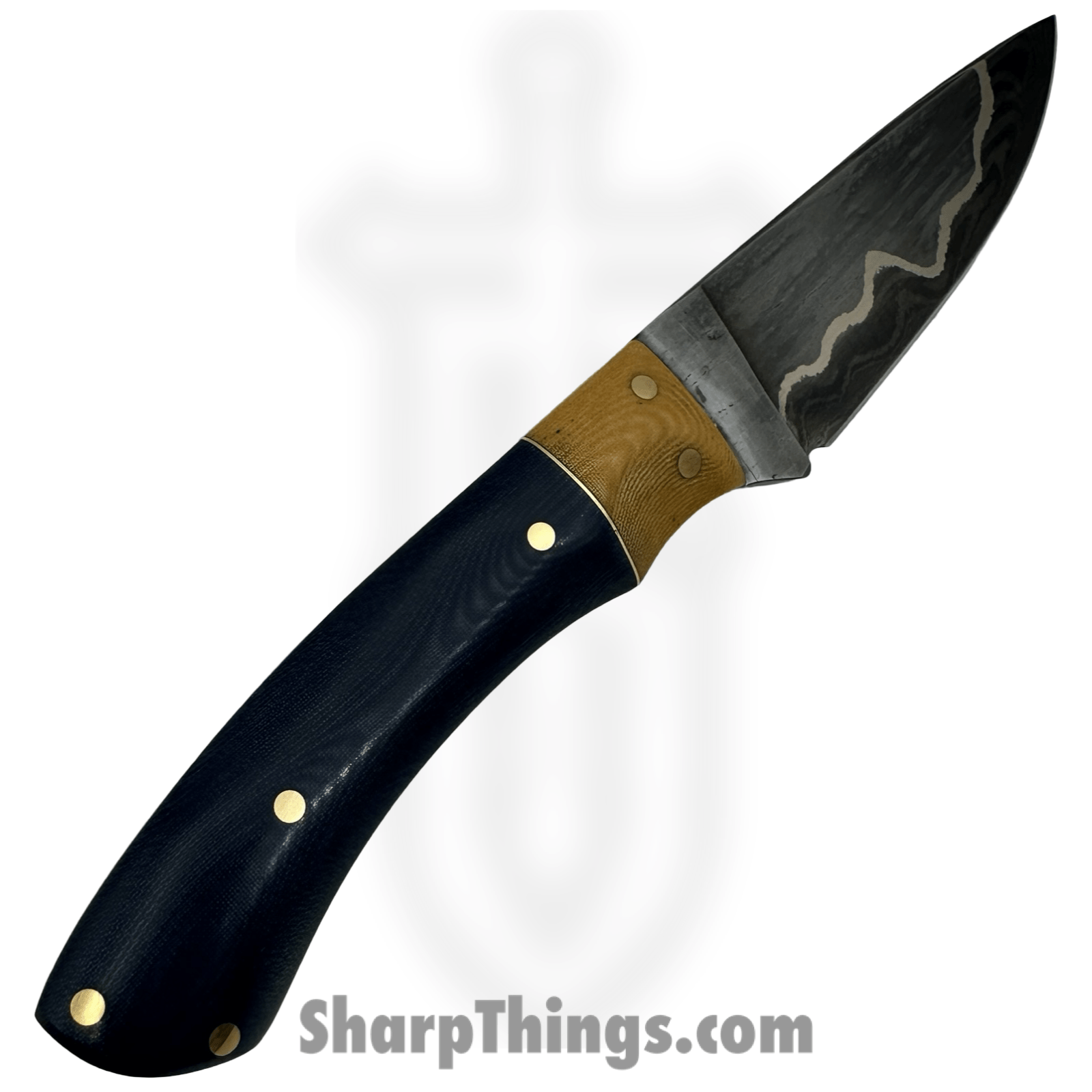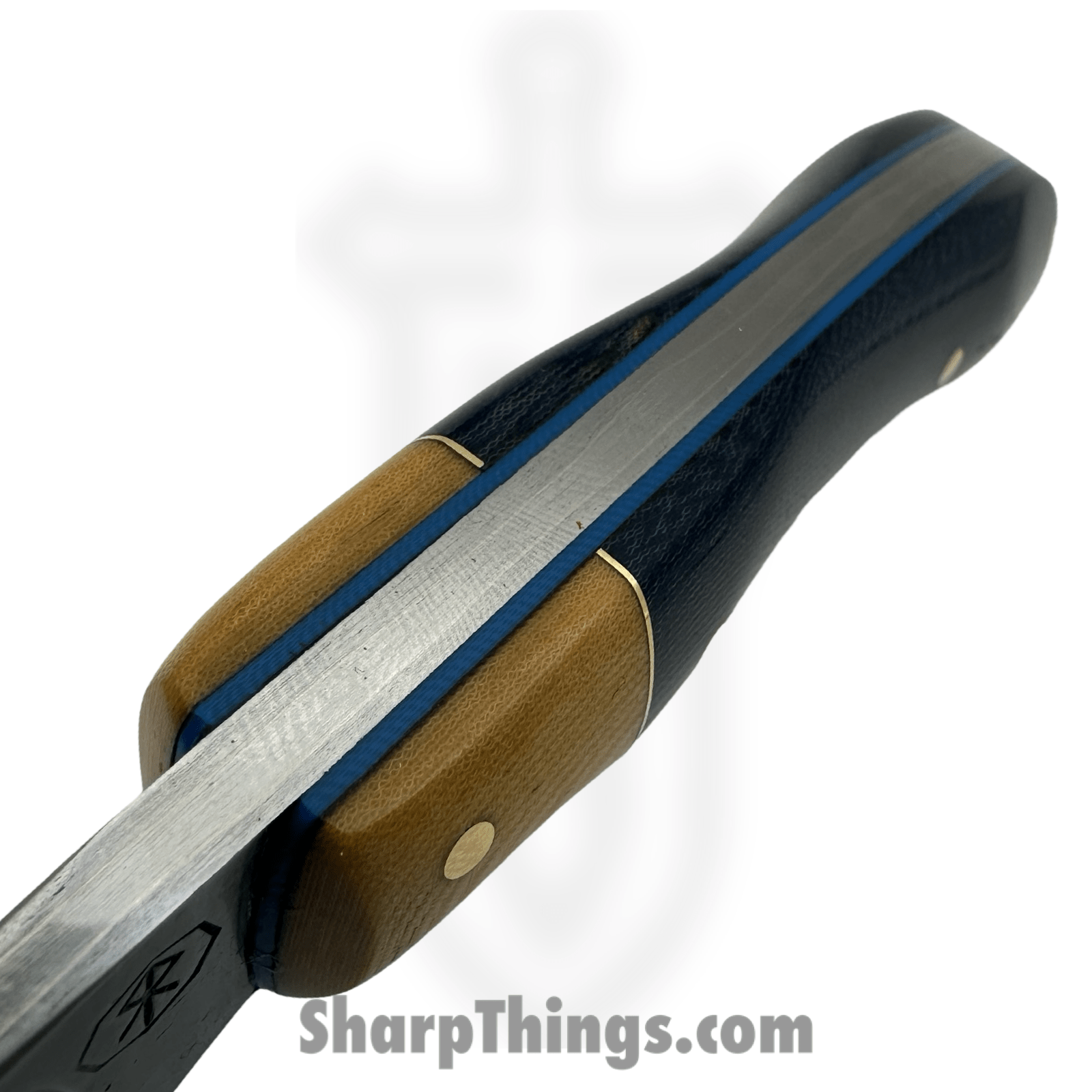 Royalty Rings Co. – RRC-EDC-01 – EDC – Fixed Blade Knife – Wroght Iron Clad Damascus Straight Back – Micarta – Butterscotch/Blue