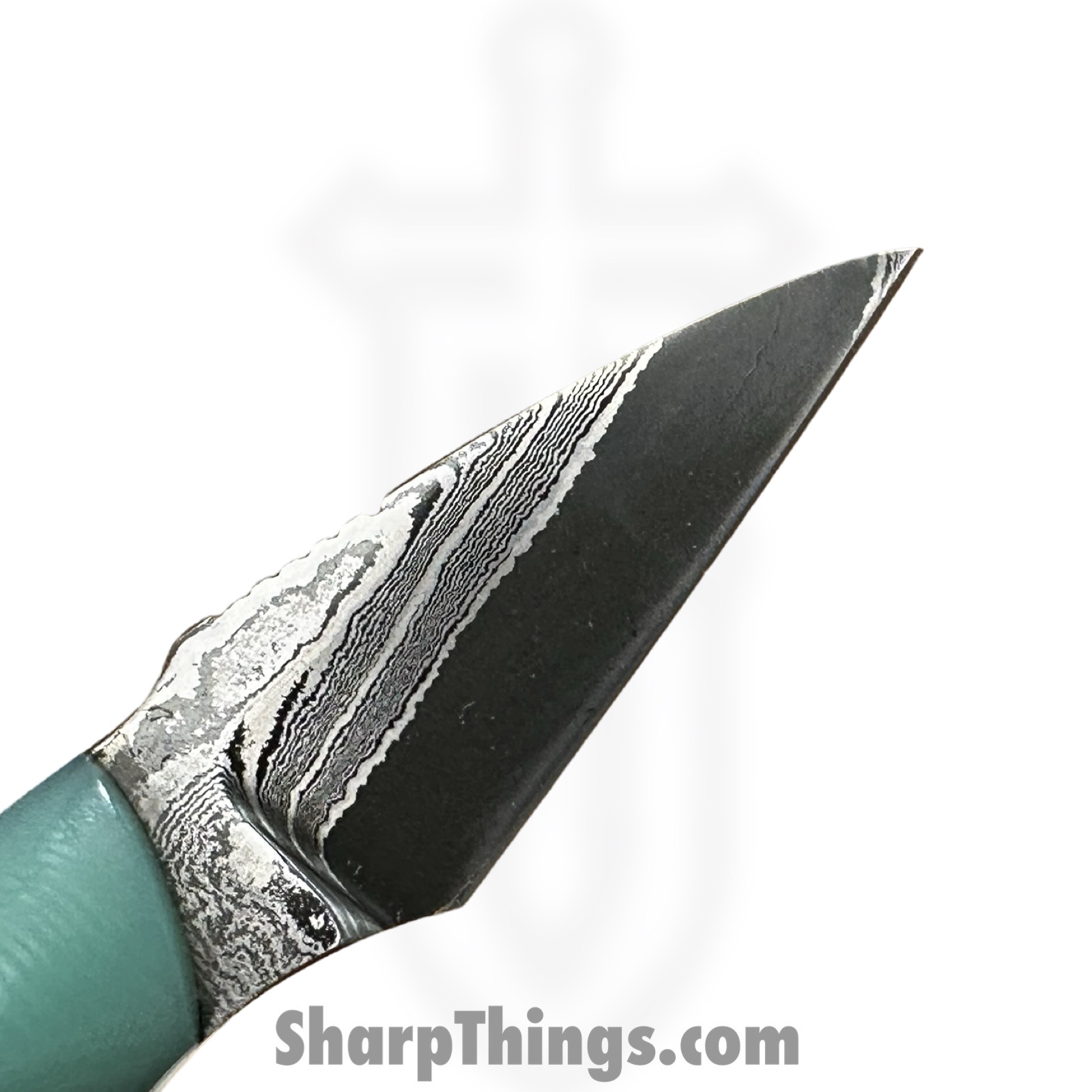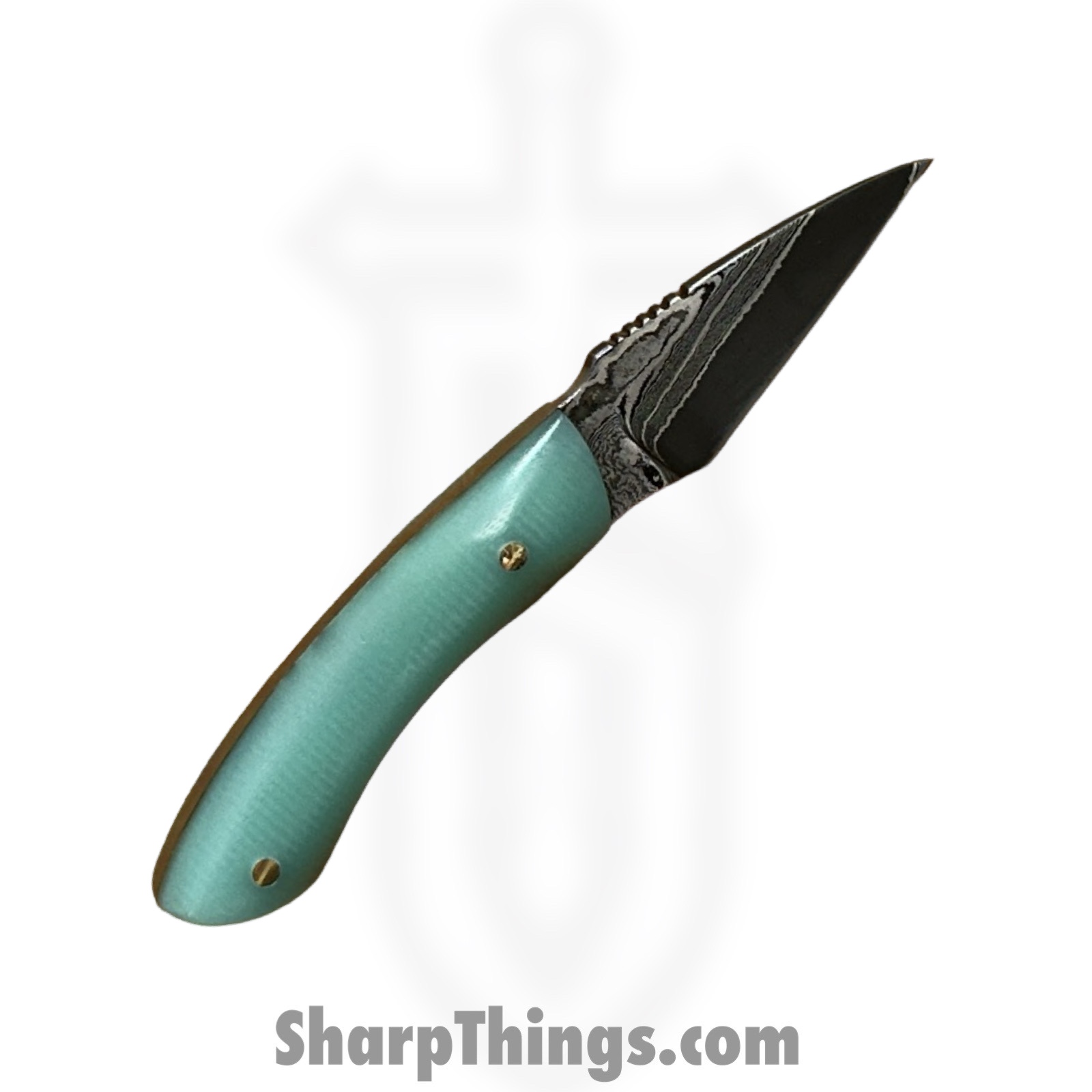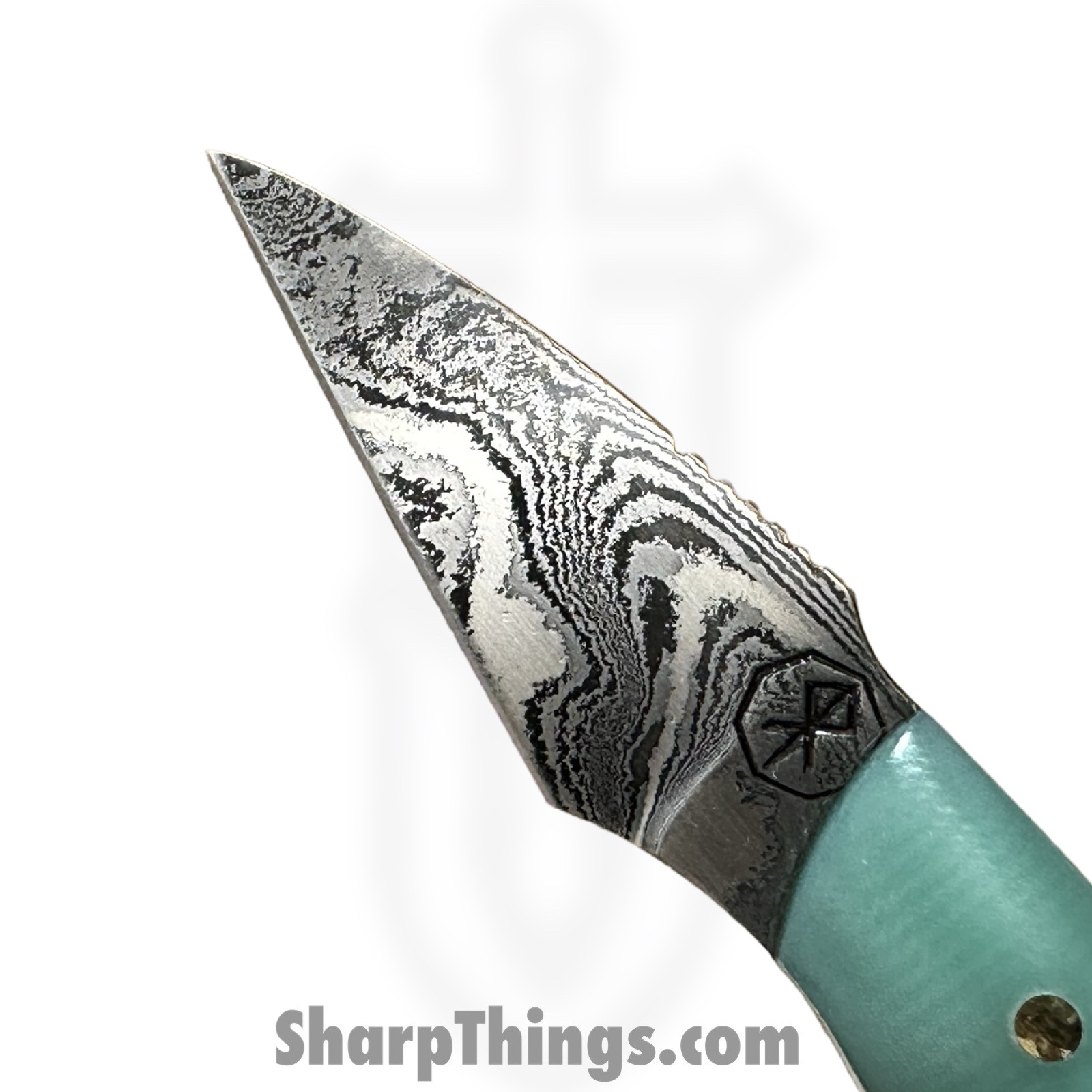 Royalty Rings Co. – RRC-Nyx-15 – Nyx – Fixed Blade Knife – Baker Forge Icestorm Wavy Damascus Kiridashi – G10 – Tiffany Blue