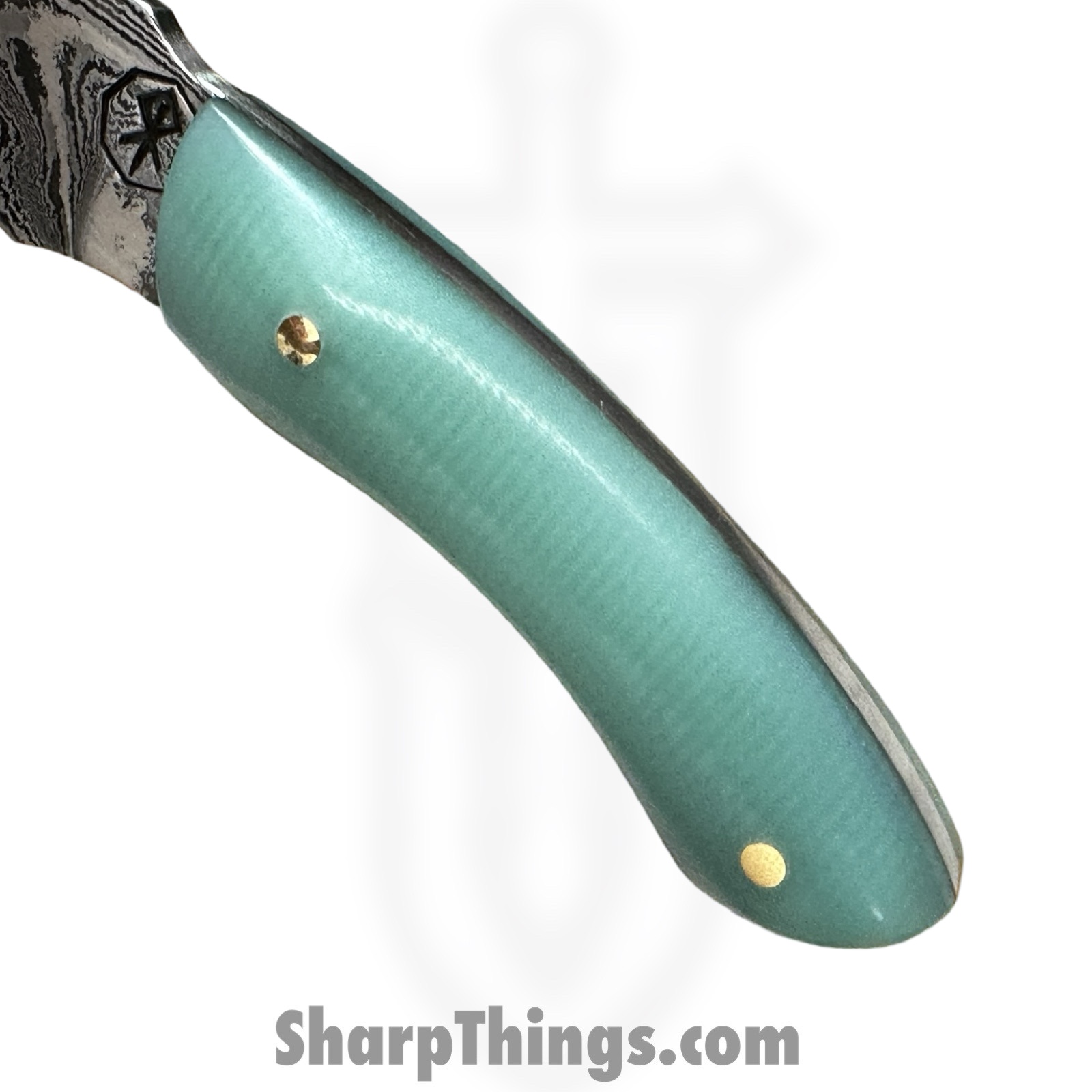 Royalty Rings Co. – RRC-Nyx-15 – Nyx – Fixed Blade Knife – Baker Forge Icestom Wavy Damascus Kiridashi – G10 – Tiffany Blue