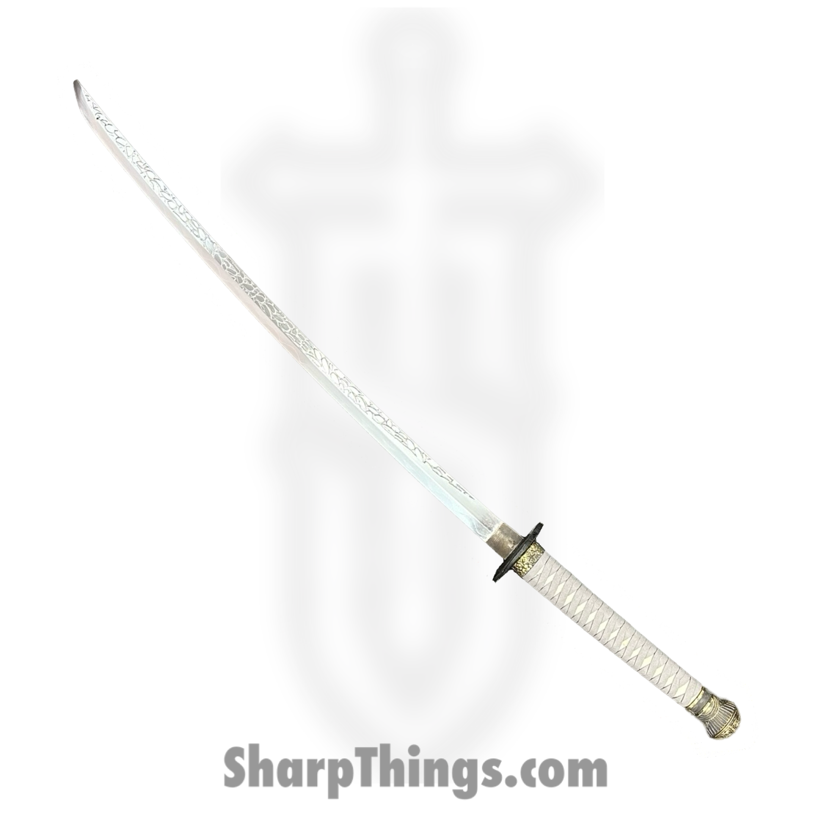 Cold Steel – CS88CKW – Mizutori Crane Wakizashi – Fixed Blade Knife – 1095 HC Damascus Sword – Cord Wrapped – Brown White