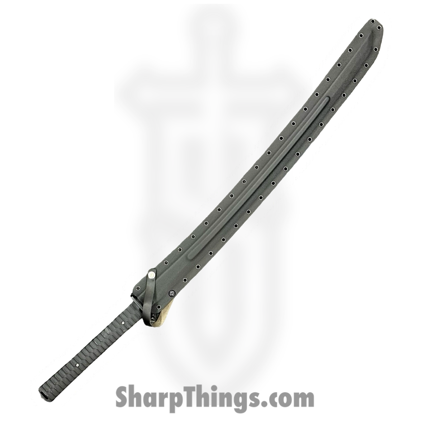 The SBC TACKAT0125 Star Commander Tactical Katana is a handcrafted weapon that seamlessly blends traditional Japanese sword craftsmanship with modern tactical design. This katana is engineered to meet the demands of contemporary users while honoring the legacy of the samurai. The blade is forged from 1095 high carbon steel and coated with titanium which enhances the blade’s durability and provides resistance against corrosion, ensuring longevity even under rigorous conditions. With an overall length of 38.98 inches, the katana features a 28.74-inch blade and a 9.84-inch handle, offering a balanced and commanding presence. Weighing 3.17 pounds, it delivers substantial heft for powerful strikes while maintaining agility for precise movements. The katana comes with a Kydex scabbard, known for its robustness and lightweight properties, ensuring the blade is securely sheathed and easily accessible. Please note that while this is fully functional, it should be handled responsibly. Regular maintenance, including proper cleaning and oiling, is recommended to preserve its condition and longevity.