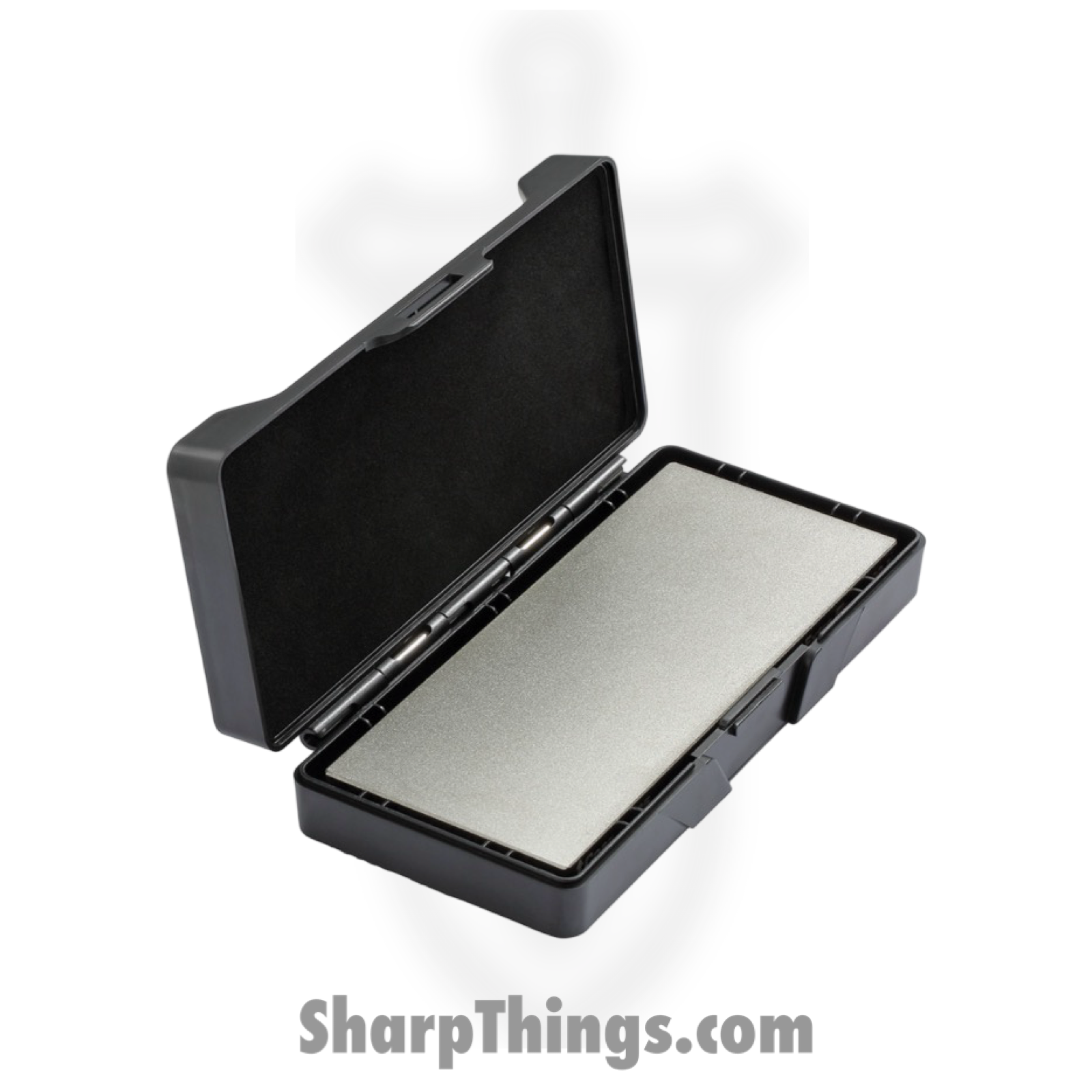 The Sharpal SHP156N Dual-Grit Diamond Whetstone Knife Sharpener is a versatile and efficient tool designed to meet the sharpening needs of both kitchen enthusiasts and outdoor professionals. Its compact dimensions of 6.5 inches in length, 3.27 inches in width, and 1.26 inches in height make it a convenient addition to any workspace. This sharpener features a dual-grit design, offering two distinct surfaces for comprehensive blade maintenance. The coarse 325 grit (45 micron) side is ideal for quick edge setting, effectively restoring dull or damaged blades. Conversely, the extra fine 1200 grit (12 micron) side is perfect for honing, providing a polished finish to sharpened edges. Incorporating Sharpal’s proprietary MirrorFlat™ technology, the whetstone ensures even contact with knives and tools during sharpening, promoting consistent and reliable results. The sharpener also includes a high-impact plastic storage box equipped with a non-slip rubber pad, which doubles as a stable base during use, enhancing safety and convenience. A notable feature of the SHP156N is the patent-pending Angle Pyramid™ Sharpening Angle Guide. This integrated tool offers four angle options—14°, 17°, 20°, and 25°—accommodating a wide range of blade types and ensuring optimal sharpening angles for various applications.