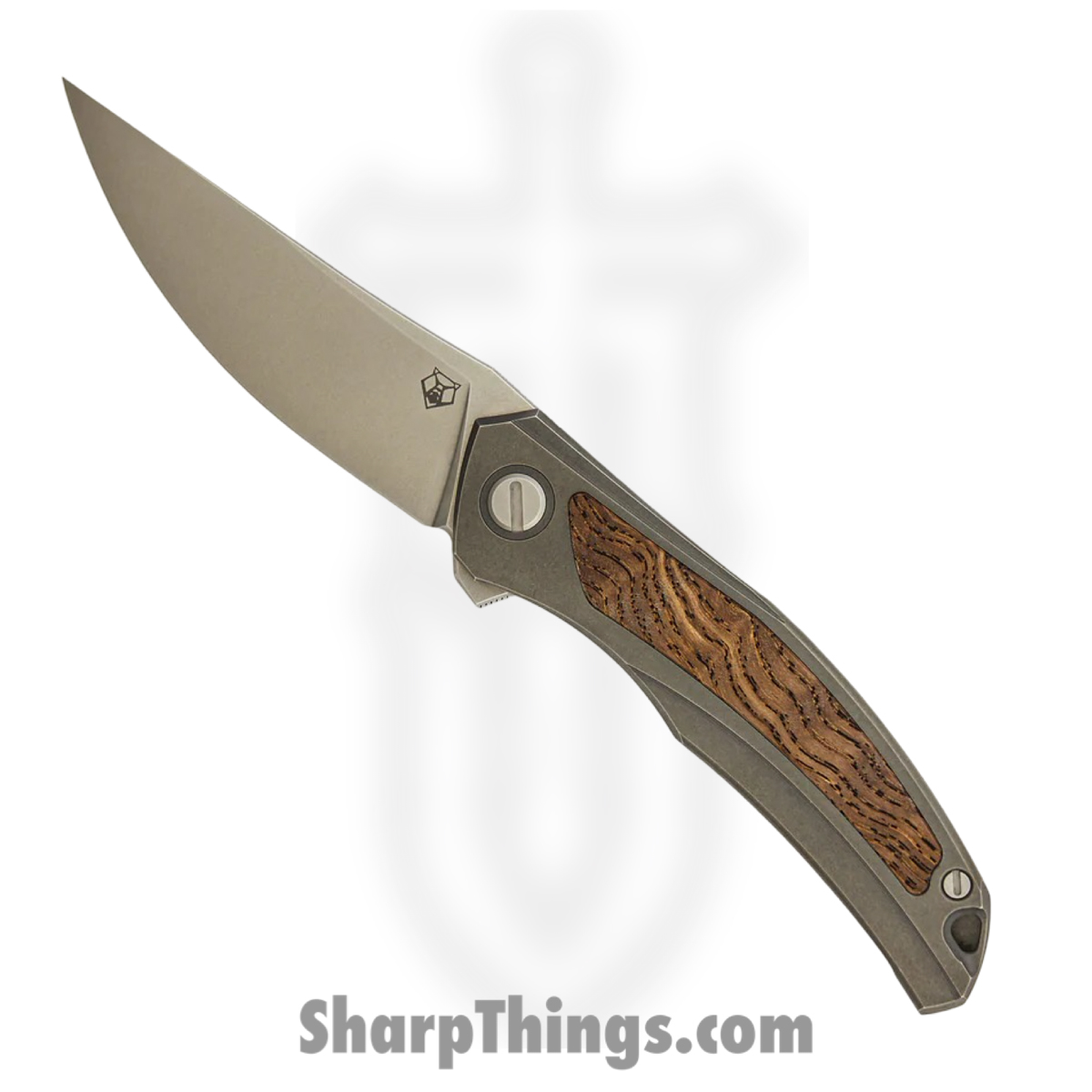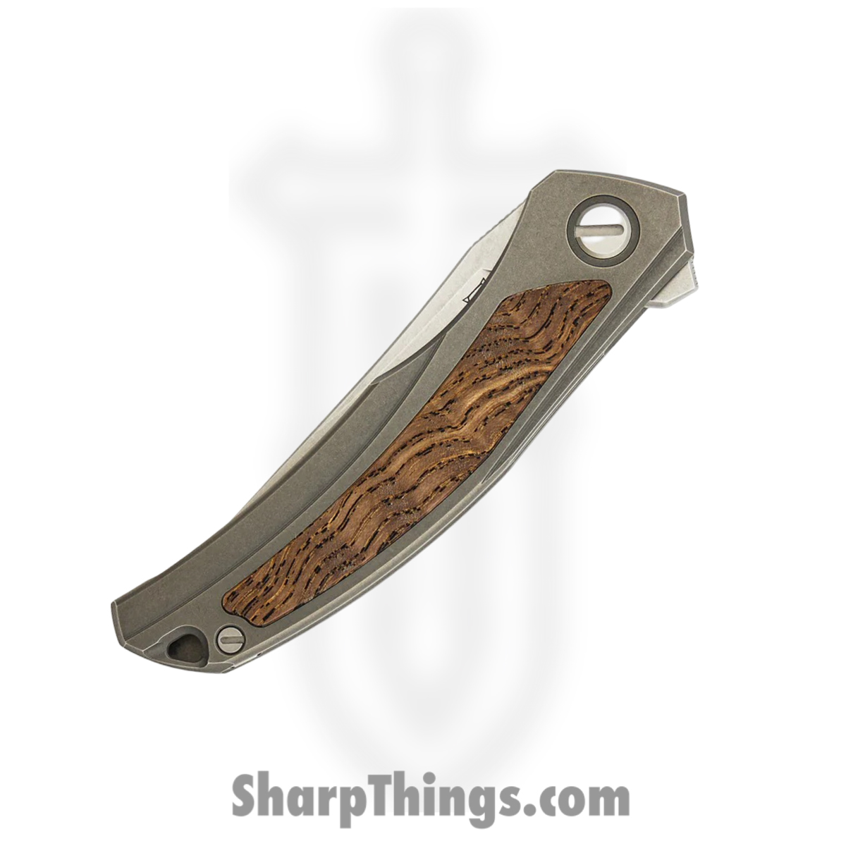 Shirogorov Knives – SHI-Q-AW-B – Ursus Quantum – Folding Knife – Cromax PM Stonewash Upswept – Titanium Ash Wood Inlay – Grey Brown
