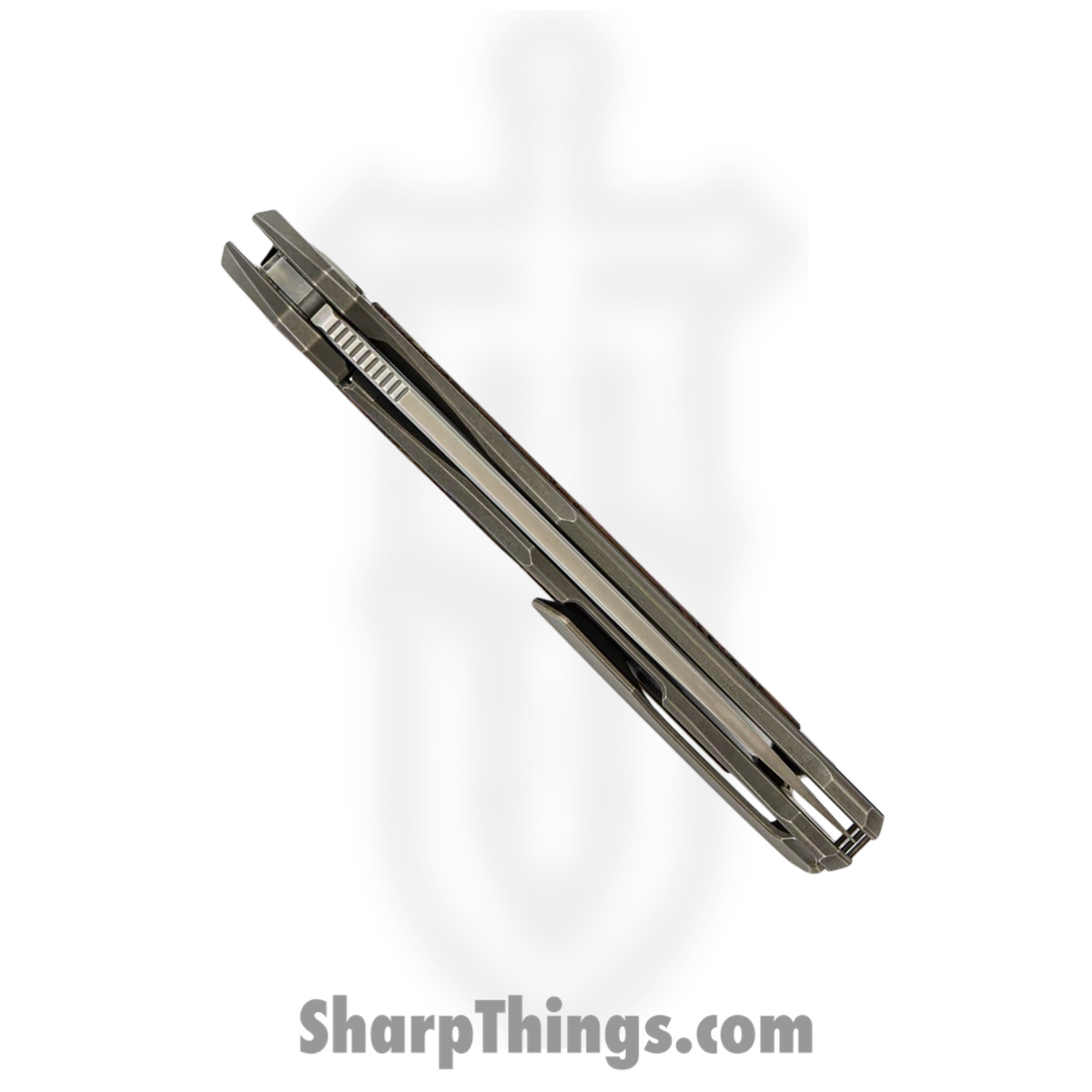 The Shirogorov Knives SHI-Q-AW-B (Ursus Quantum) is a high-end folding knife engineered for both collectors and serious users. With refined ergonomics, premium materials, and precision machining, it exemplifies the strength, balance, and craftsmanship Shirogorov is known for. This version features a 3.74-inch stonewashed Cromax PM blade, optimized for durability and edge retention. The spine is lightly jimped for improved grip and tactile control under thumb pressure. The blade thickness is a solid 3.4036 mm (0.134 in), giving it a rugged presence without excessive bulk. In the open configuration, the knife spans 8.86 inches overall, with a balance that places control confidently in the hand. It weighs approximately 4.4 ounces (≈ 124.7 g), delivering a feel that is firm yet not overly heavy for most users. The pivot system operates on a Multi-Row Bearing System (MRBS), enabling buttery smooth deployment and retraction. All external hardware—including pivot screws, frame screws, and standoffs—is stonewashed to create a cohesive, low-glare aesthetic that resists fingerprints. One of the standout features is the titanium frame lock handle, which is reinforced with a steel lock bar insert to enhance durability and lockup security. The handle scales are made of titanium with Brown Ash wood inlays, lending a touch of natural warmth to the design. Internally, the liners are lightly milled to reduce weight without sacrificing structural integrity. The backspacer is delivered in satin-finish titanium, complementing the overall metallic palette. For carry, it uses a tip-up, 3D-machined stonewashed titanium pocket clip, which hides its mounting screw for a clean look.