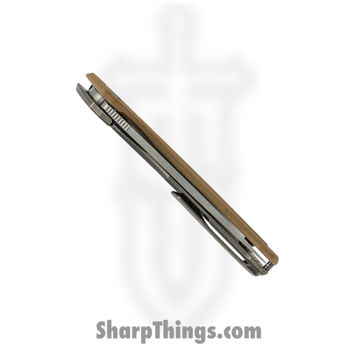 The Shirogorov Knives SHI-URS-QM-BGG10, also known as the Ursus Quantium, is a premium folding knife that exemplifies the pinnacle of precision engineering and refined aesthetics. Designed and crafted by Sergey Shirogorov, a renowned figure in the high-end knife industry, this model seamlessly blends form and function to deliver an exceptional everyday carry (EDC) experience. At the heart of the SHI-URS-QM-BGG10 lies a 3.74-inch trailing point blade forged from Cromax PM steel. This advanced powder metallurgy steel is celebrated for its superior edge retention and corrosion resistance, ensuring the blade maintains its sharpness and performance over time. The blade features a stonewashed finish, which not only enhances its visual appeal but also helps to conceal scratches, maintaining its pristine look with regular use. Jimping along the spine provides additional grip, allowing for precise control during detailed cutting tasks. The knife’s overall length measures 8.86 inches, with a blade thickness of 0.134 inches, striking a balance between robustness and portability. Weighing in at 3.8 ounces, it offers a substantial feel without being cumbersome, making it ideal for daily carry. The handle showcases Shirogorov’s commitment to quality and design. Constructed from stonewashed titanium, it is both durable and lightweight. The presentation side is adorned with a beige G10 scale, providing a tactile grip and a touch of elegance. The lock side features a titanium frame lock with a G10 inlay, enhancing both the knife’s aesthetics and structural integrity. A steel lock bar insert is incorporated to reduce wear and ensure a secure lockup over time. Equipped with Shirogorov’s proprietary Multi Row Bearing System (MRBS), the SHI-URS-QM-BGG10 delivers a buttery-smooth deployment and a satisfying tactile feedback upon opening. The stonewashed titanium pocket clip is 3D-machined for a comfortable carry and is designed for tip-up, right-hand carry. Light milling on the inner liners reduces weight without compromising strength, contributing to the knife’s overall performance.