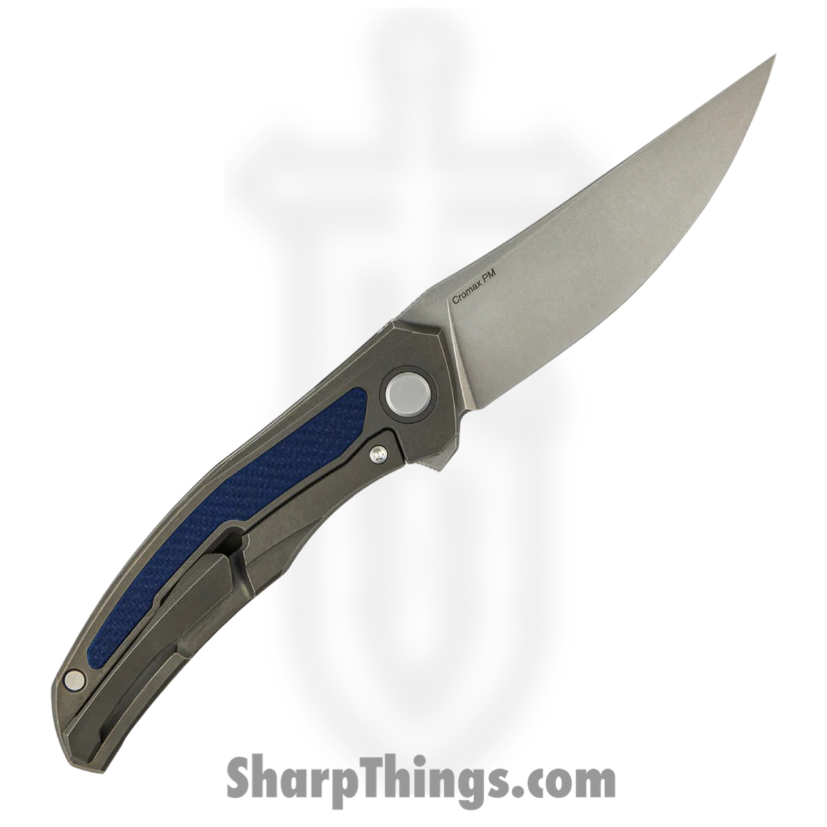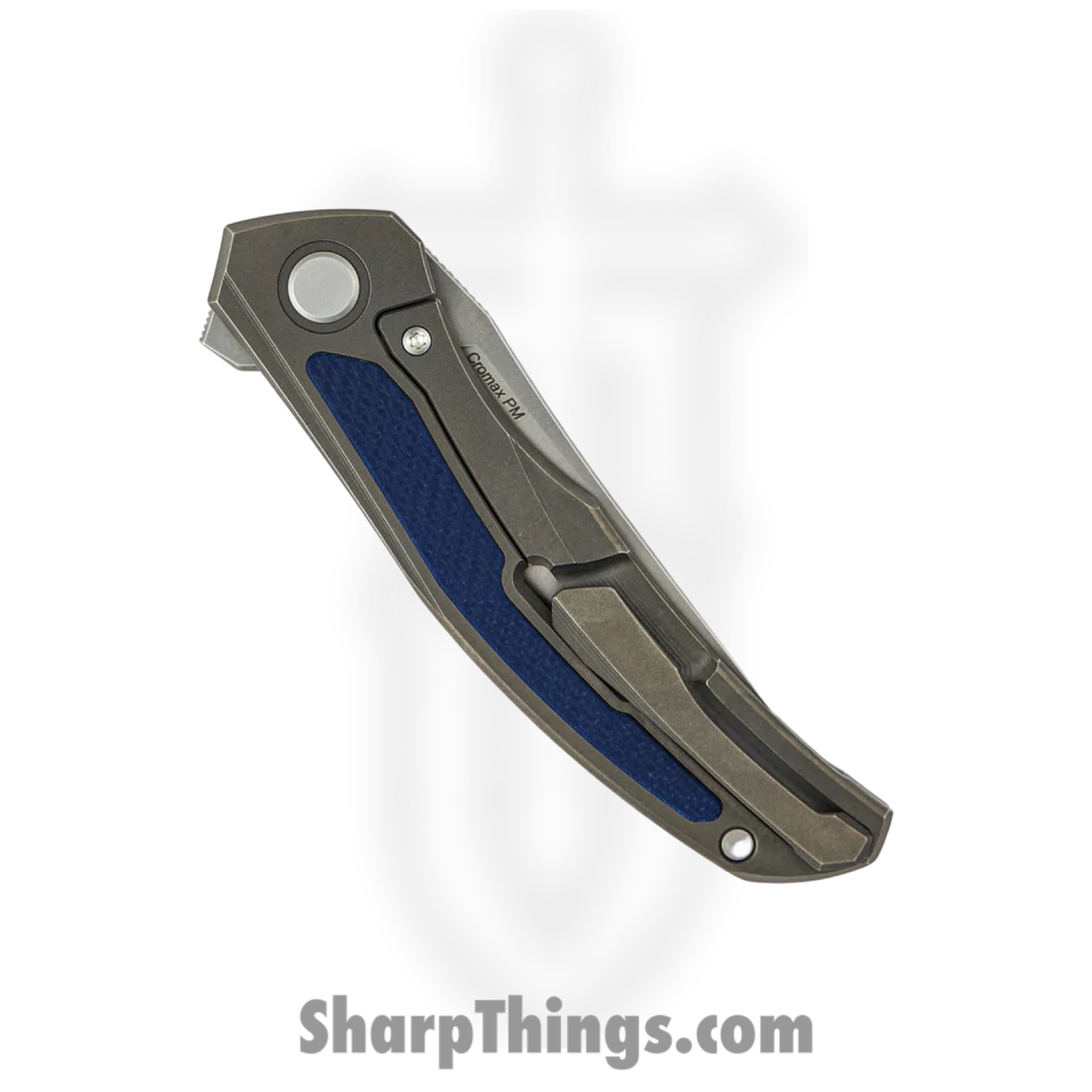Shirogorov Knives – SHI-URS-QNL-DBG10 – Ursus Quantum – Folding Knife – Cromax PM Stonewash Upswept – Titanium G10 Inlay – Grey Dark Blue