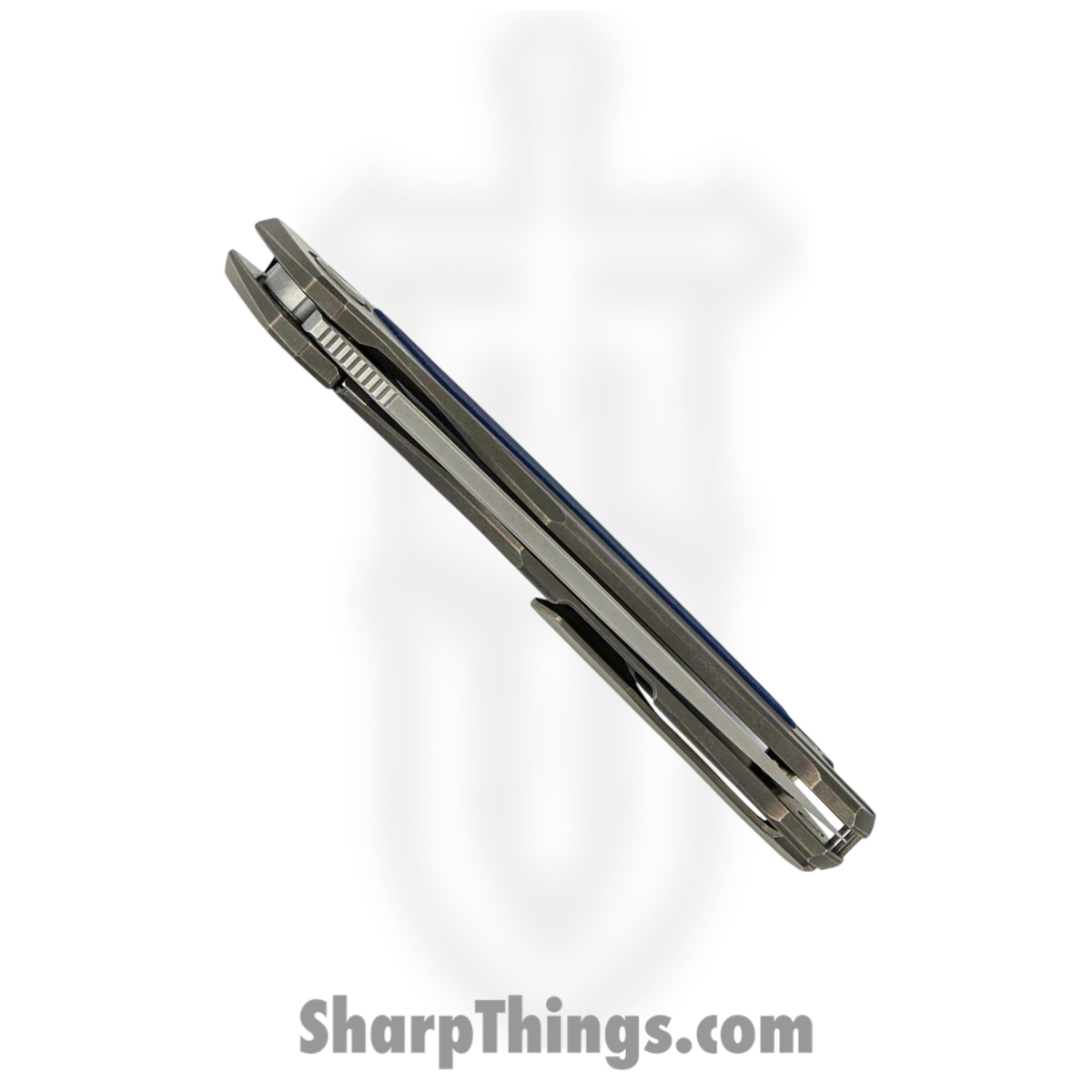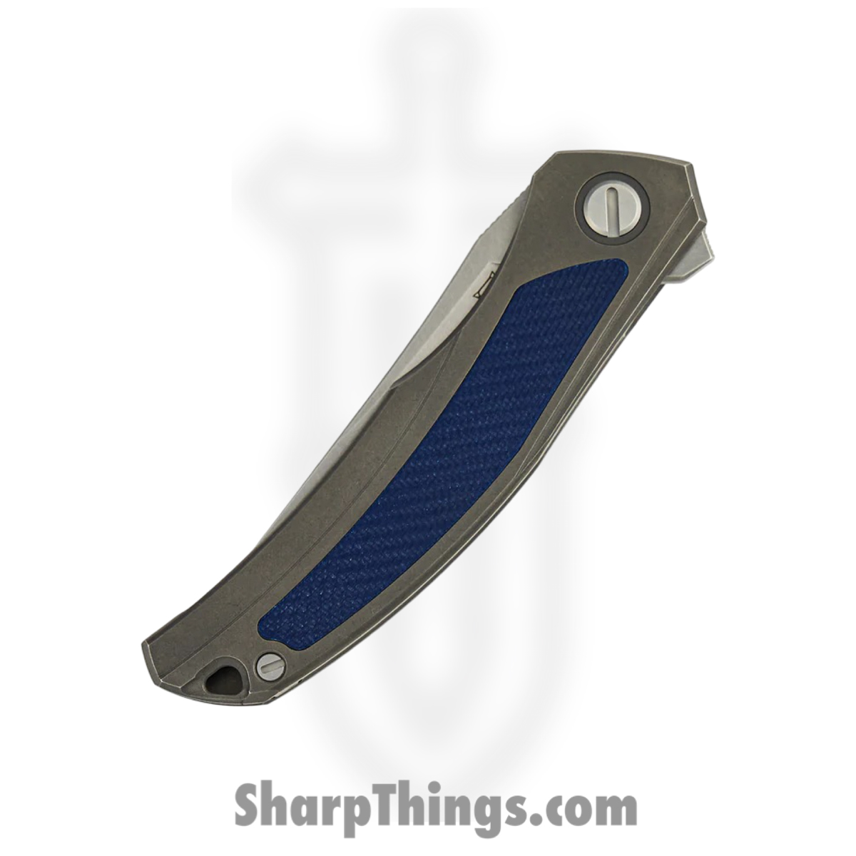 Handle Material: Bead-blasted and stonewashed titanium with dark blue G10 inlay